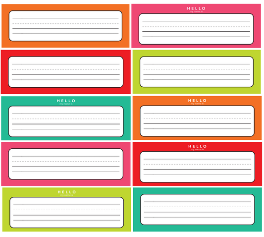 Rectangle Name Tags | Black, White and Stylish Brights Confetti | UPRINT | Schoolgirl Style
