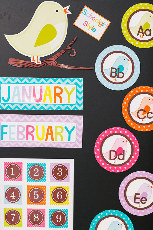 "Bright Birds" Classroom Decor Bundle | UPRINT | Printable Classroom Decor | Teacher Classroom Decor | Schoolgirl Style