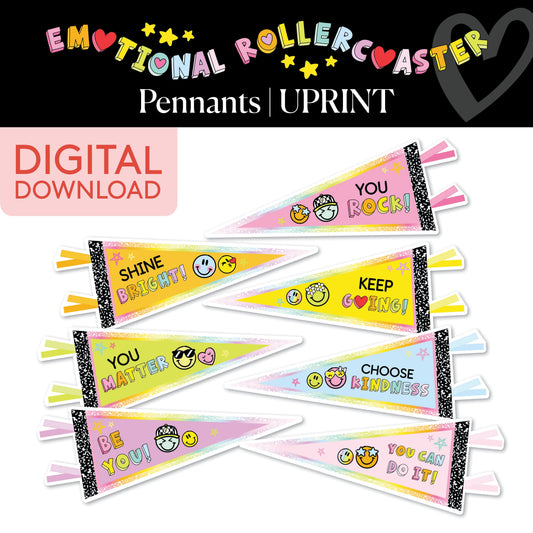 Printable Rainbow Pastel Inspirational Pennants | Emotional Rollercoaster
