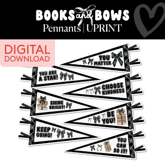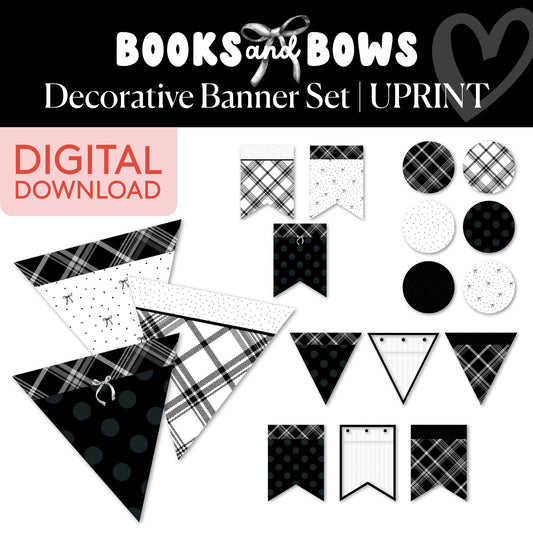 Printable Black and White Decorative Banner Set | Books and Bows