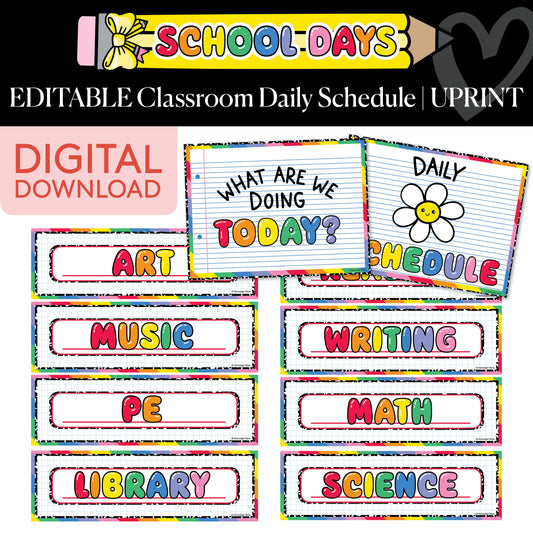 Printable Bright Rainbow Editable Classroom Daily Schedule | School Days