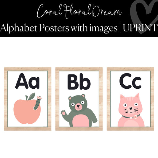 Alphabet Posters with Images | Coral Classroom Decor | UPRINT | Coral Floral Dream | Schoolgirl Style