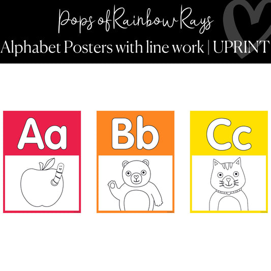Alphabet Posters with Line Work | Rainbow Classroom Decor | Pops of Rainbow Rays | UPRINT | Schoolgirl Style