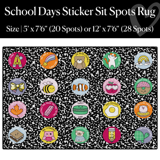 A 7x10-foot rug comfortably fits 20 students in a circle, offering personal space and easy group organization. |