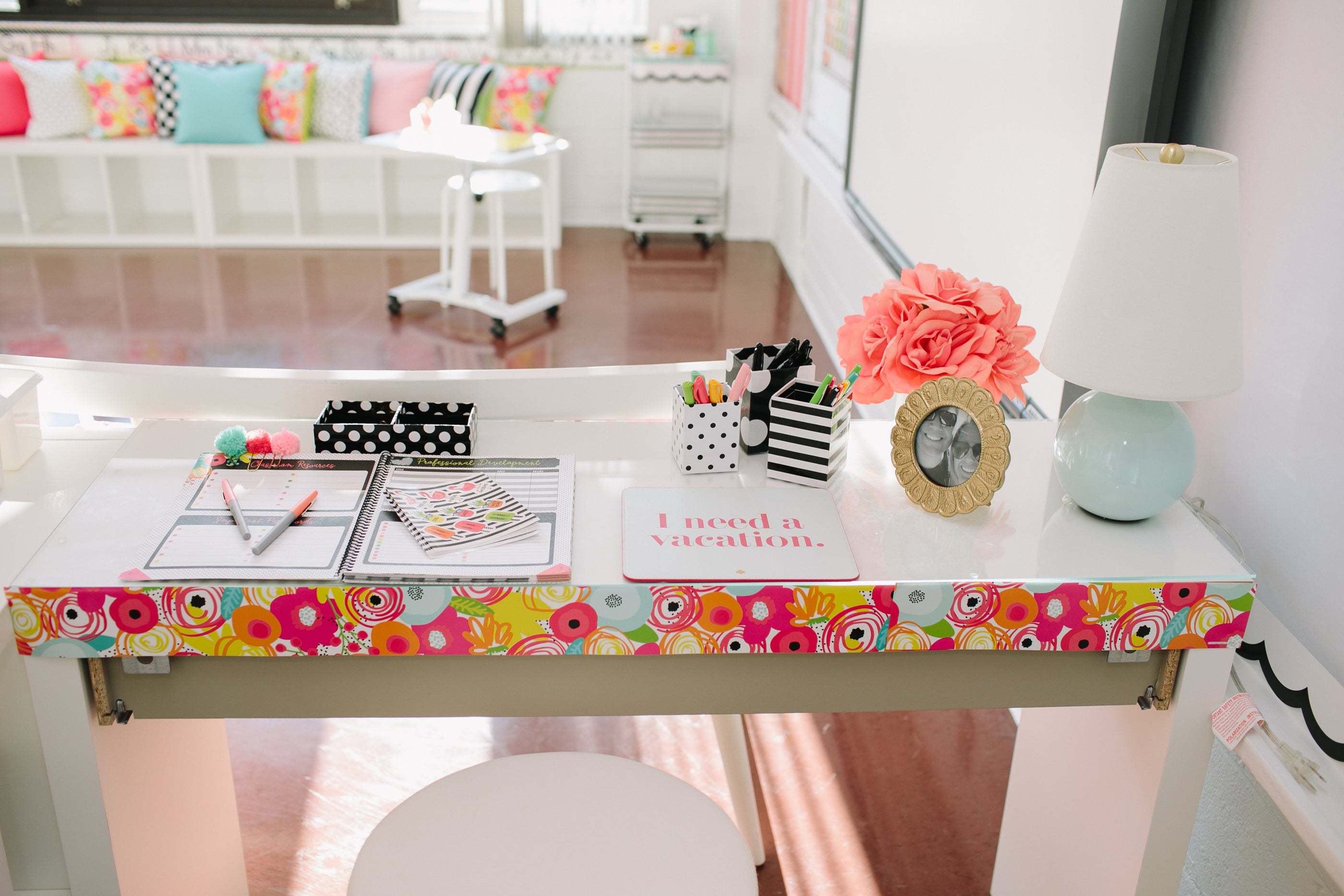This collection embodies the essence of a "Happy Place," reflecting the joyful, welcoming environment Jessica has thoughtfully created for her students. Amid the challenges of the pandemic and uncertain times, we wanted to provide her and her students with a vibrant, fun space—a place where they could feel safe, inspired, and free to escape the stresses of the outside world. This makeover is more than just a classroom; it's a sanctuary for learning and growth.
