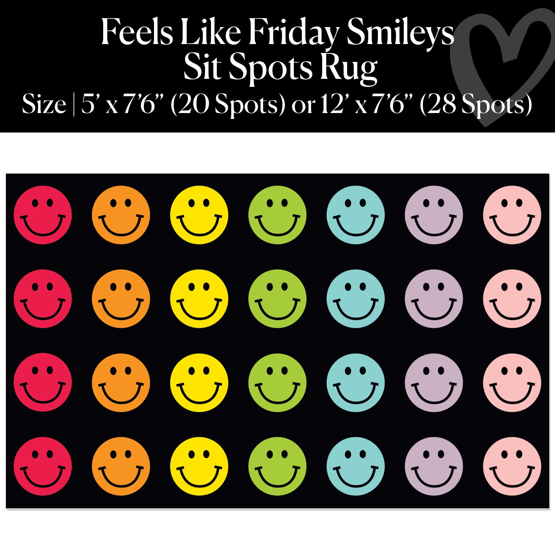 It feels like Friday smileys! The sit spots smiley faces on this rug are sure to bring instant cheer! And the classic rainbow palette with the black background makes this bright and beautiful rug a showstopper. This rug coordinates beautifully with many of the Schoolgirl Style classroom decor themes!