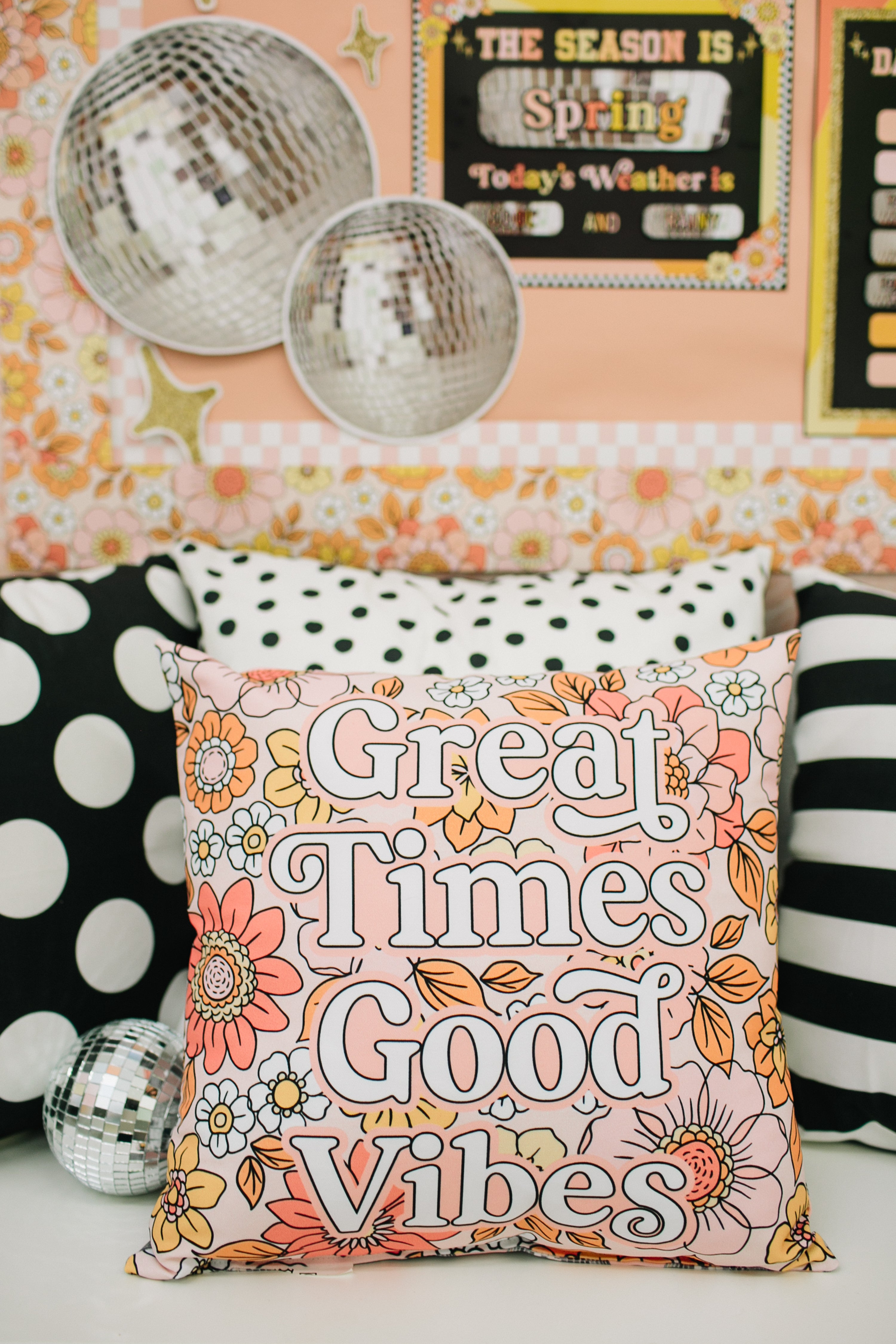 Classroom Pillow | Classroom Decor | "Great Times, Good Vibes" | Pillow Cover