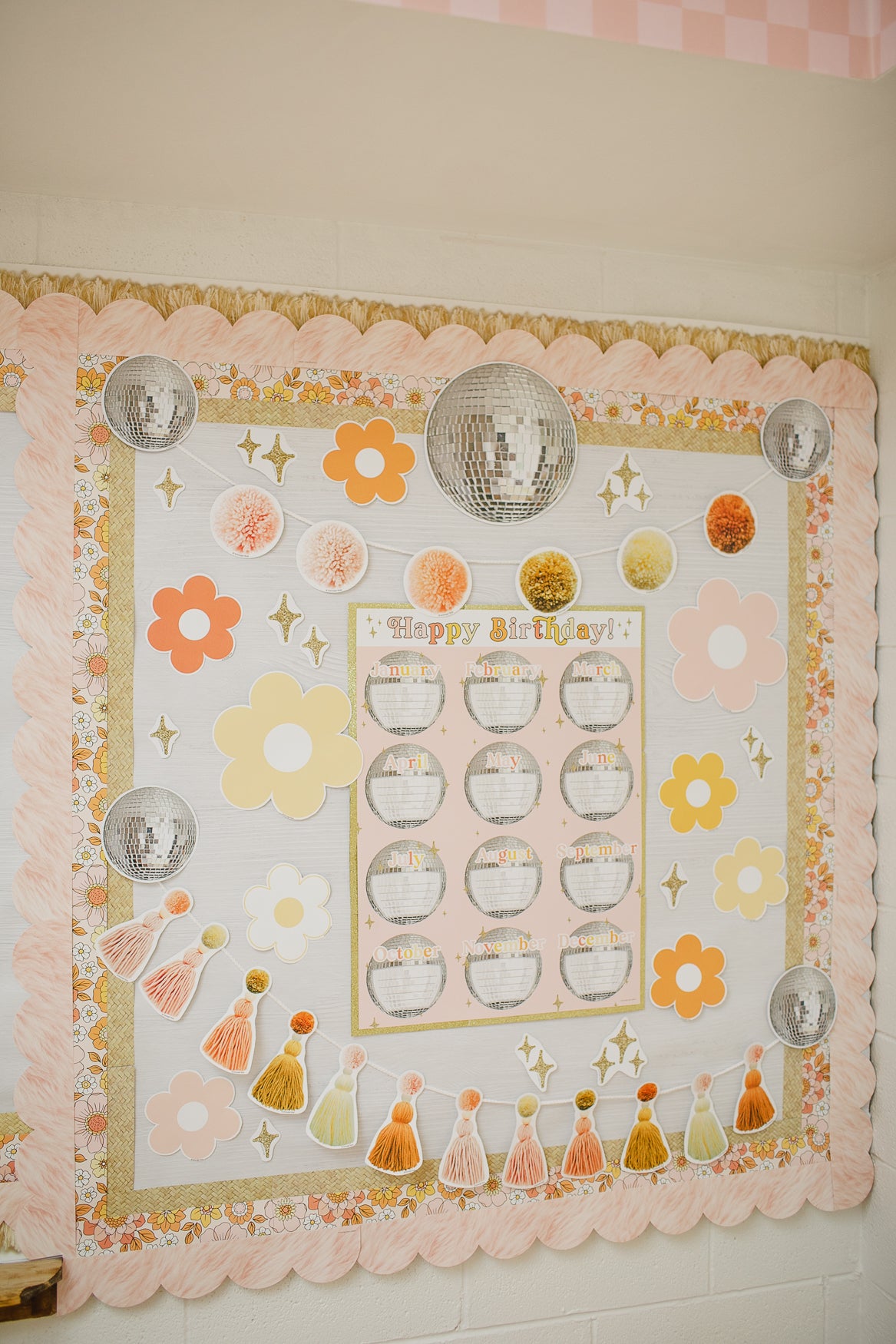Daisy "Welcome" Bulletin Board Set | Retro Classroom Decor | UPRINT | Schoolgirl Style