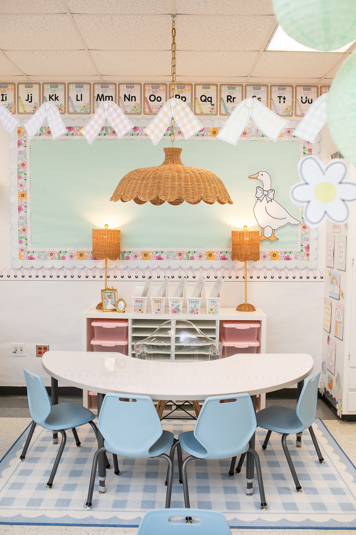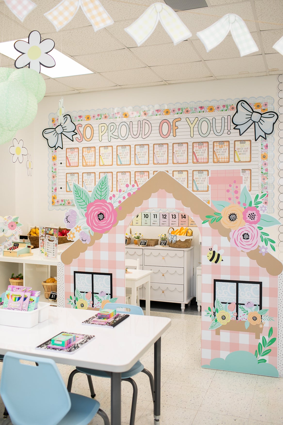 We recently completed our dreamy Pretty In Pastel classroom makeover in Godley, Texas for Logan, a Kindergarten teacher with a heart for soft colors and cozy details! Her new space is filled with delicate florals, sweet bows, gingham accents, and the most charming touches—perfect for creating a warm and welcoming learning environment. This Kindergarten classroom now includes thoughtful dramatic play elements, hands-on learning areas, and decor that blends function with whimsy. Scroll down to explore every detail of this pastel-inspired makeover!