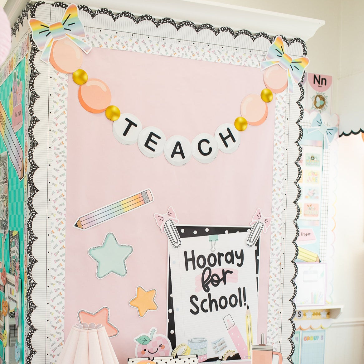 Our classroom borders pair perfectly with our Fadeless bulletin board paper!