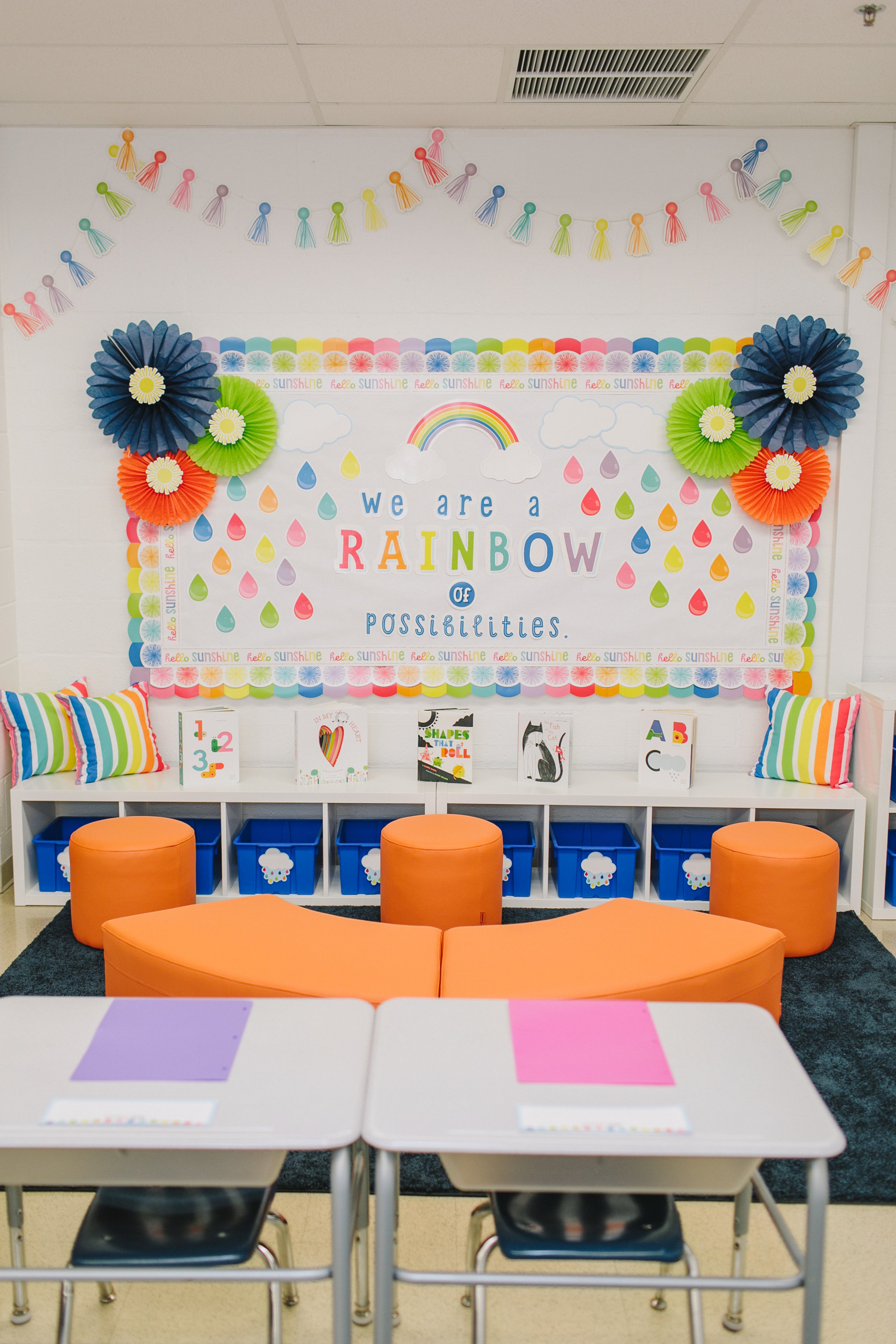 The Schoolgirl Style team headed to Pennsylvania for our Hello Sunshine classroom makeover, turning Katherine’s first grade classroom into a bright, joyful space! With fun touches like fans, lanterns, and playful polka dots, we brought in texture and dimension throughout her classroom. One of my favorite parts of these makeovers is creating a special space just for the teacher, and for Katherine, we designed the perfect "command center." The entire room now radiates sunshine and happiness!