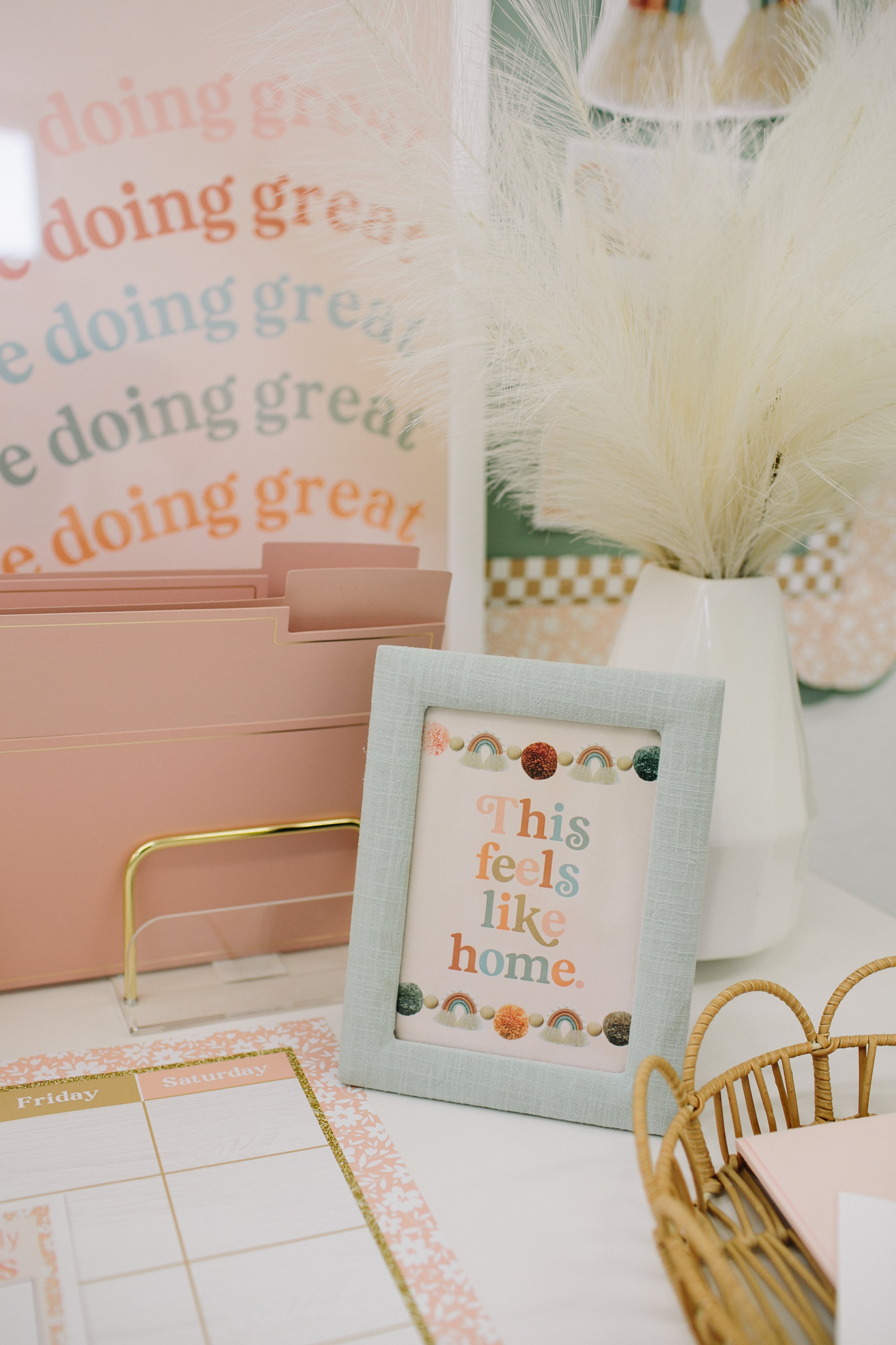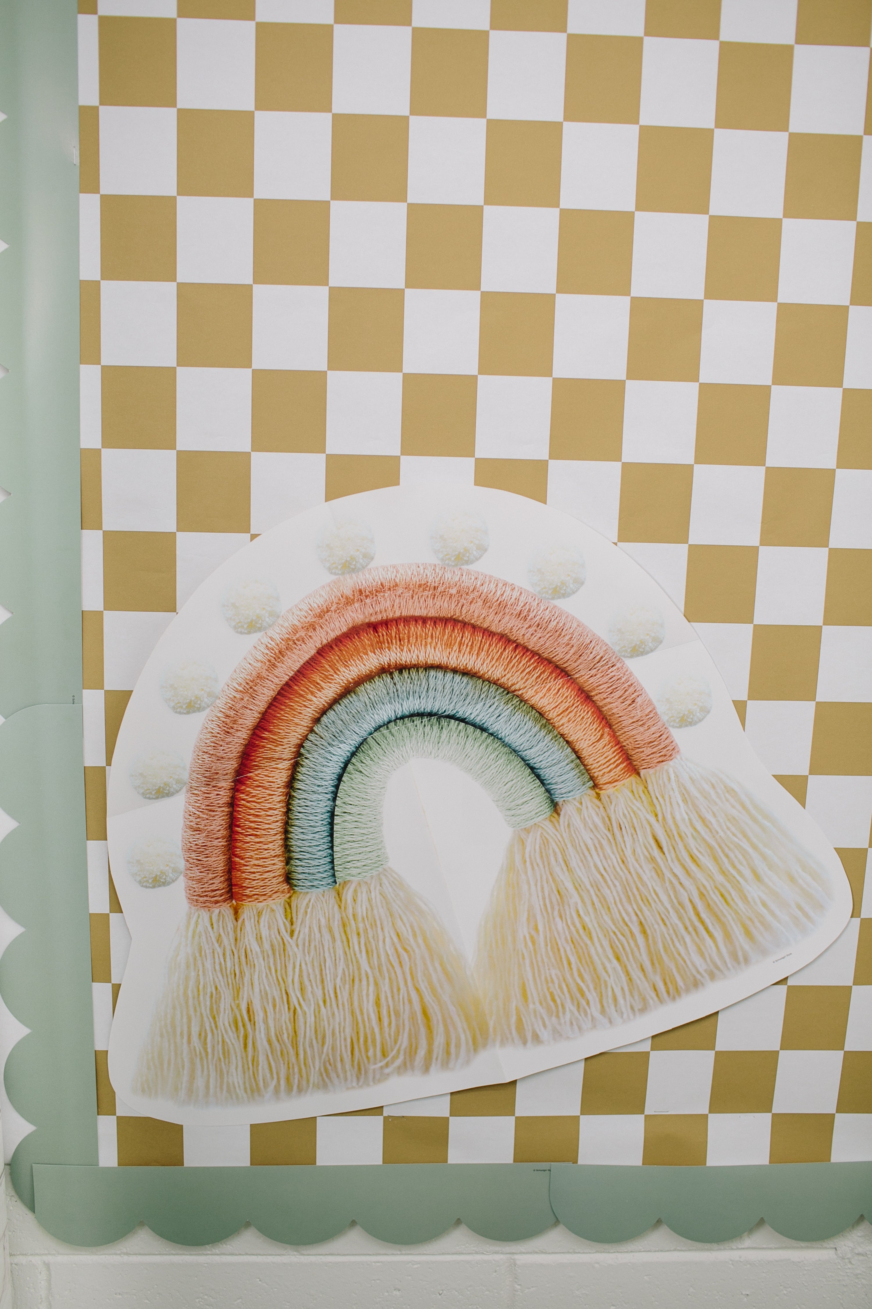 Get ready to "Shake Your Groove Thing" with the latest Boho Classroom Decor collection by Schoolgirl Style. Inspired by neutral, muted tones this Boho Classroom Décor collection is a cascade of calming elegance. The charming neutral "sweater weather" checkered pattern and dainty florals add a touch of whimsy. In true Schoolgirl Style fashion, it's all about the details – from the playful elements of roller skates to the boho chic macramé fringe rainbows. Each piece elevates this collection to a unique vintage beauty. Transform your space into a haven of muted charm and bohemian elegance with the Shake Your Groove Thing Classroom Decor Collection.
