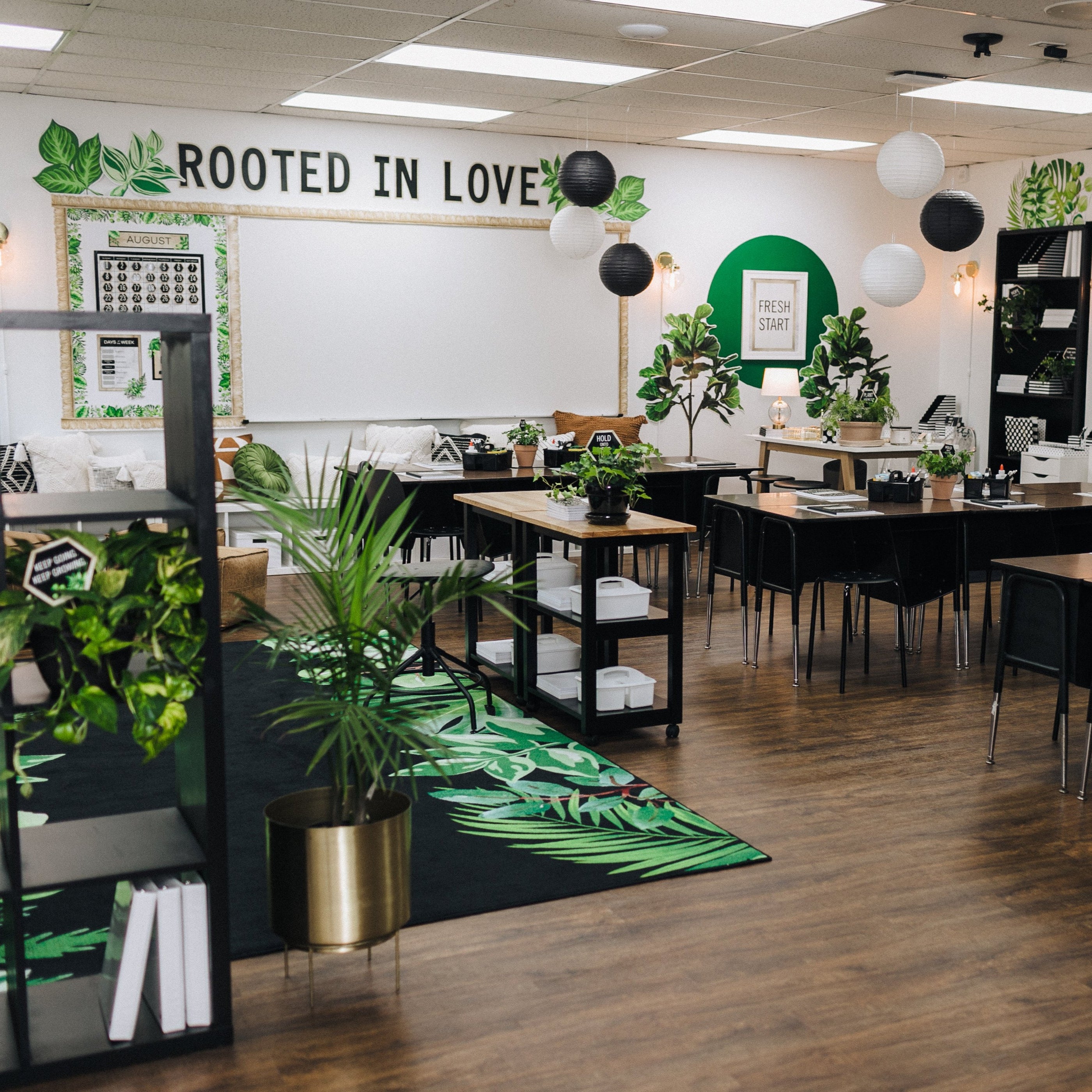 Our Simply Boho classroom makeover in Texas was truly special. We gave Shelly, a fourth-grade teacher, a fresh start after persevering through personal challenges and the pandemic, all while creating a safe space for her students. The collection features a mix of plants, black-and-white patterns, and inspiring messages. We added flexible seating throughout and maximized storage to ensure Shelly's classroom is both functional and inspiring for the year ahead.