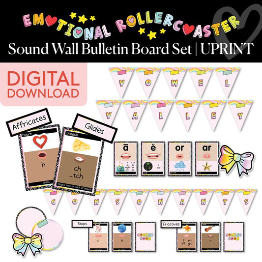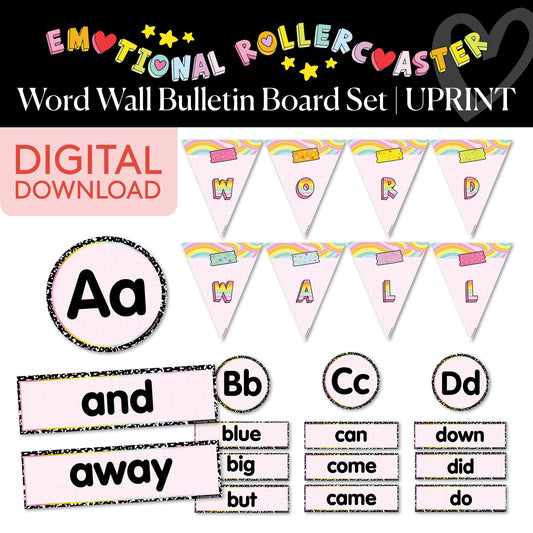 Printable Rainbow Pastel Word Wall Bulletin Board Set | Emotional Rollercoaster