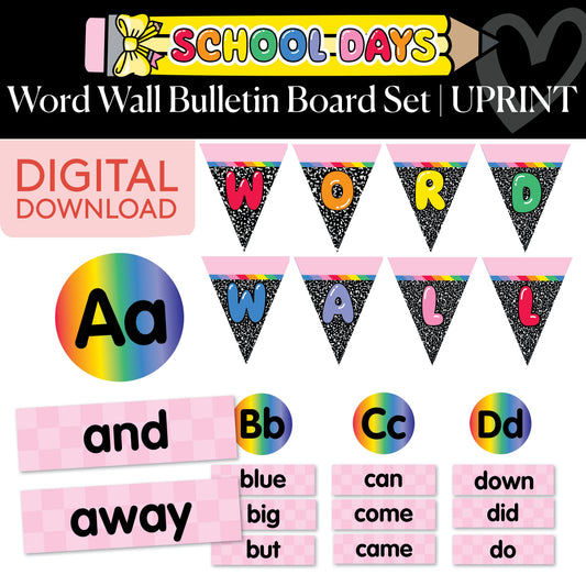 Printable Bright Rainbow Word Wall Bulletin Board Set | School Days