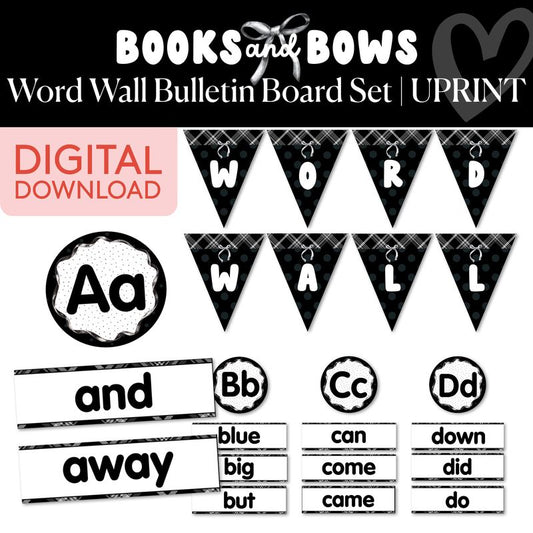 Printable Black and White Word Wall Bulletin Board Set | Books and Bows