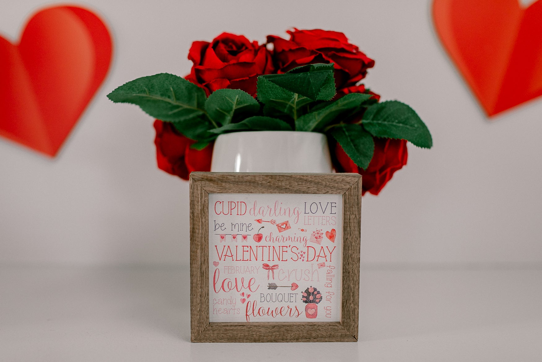 This Valentines frame is the perfect way to add a touch of charm to any wall or shelf!
