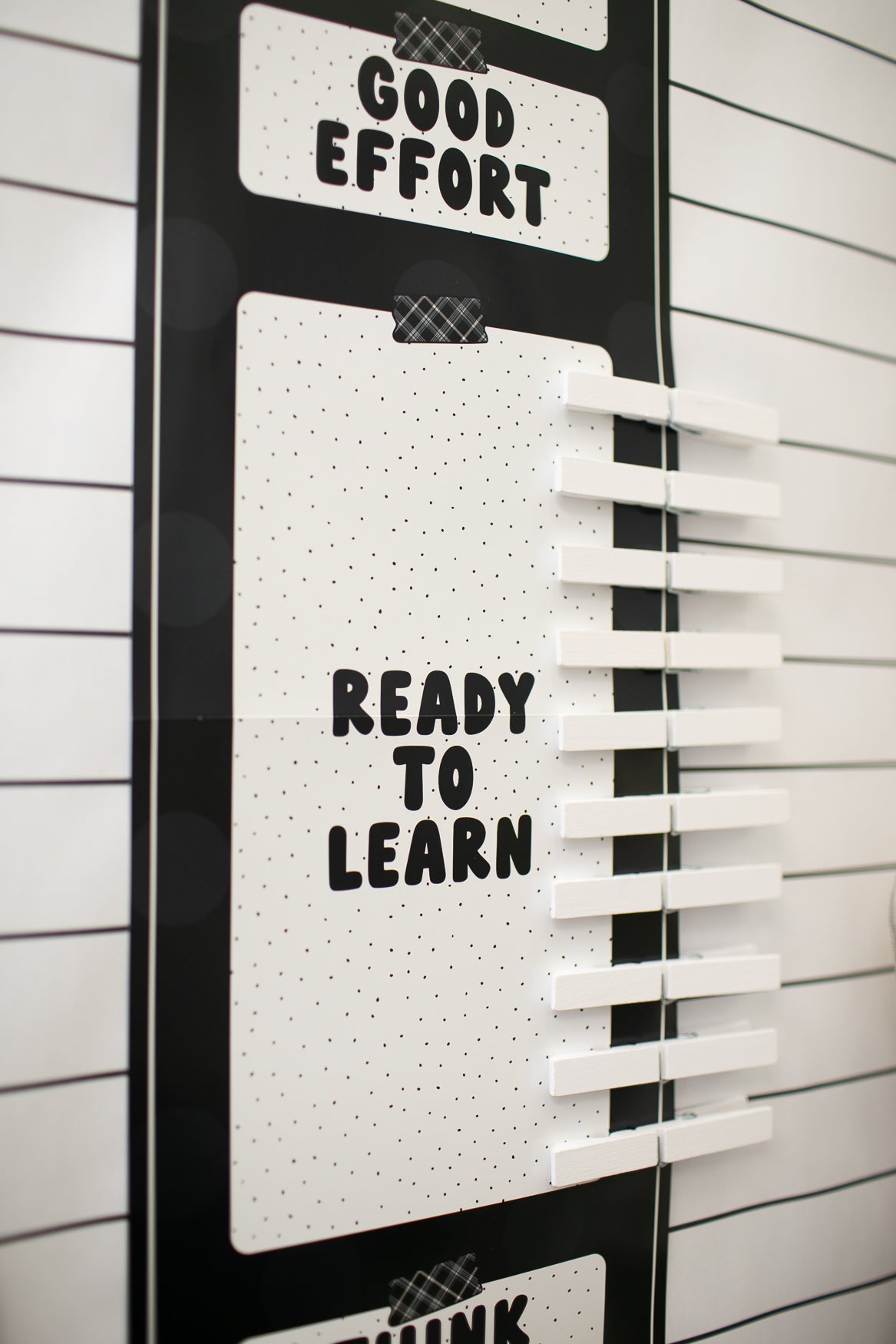 Black and white classroom decor adds flexibility while still delivering a bold, polished look.