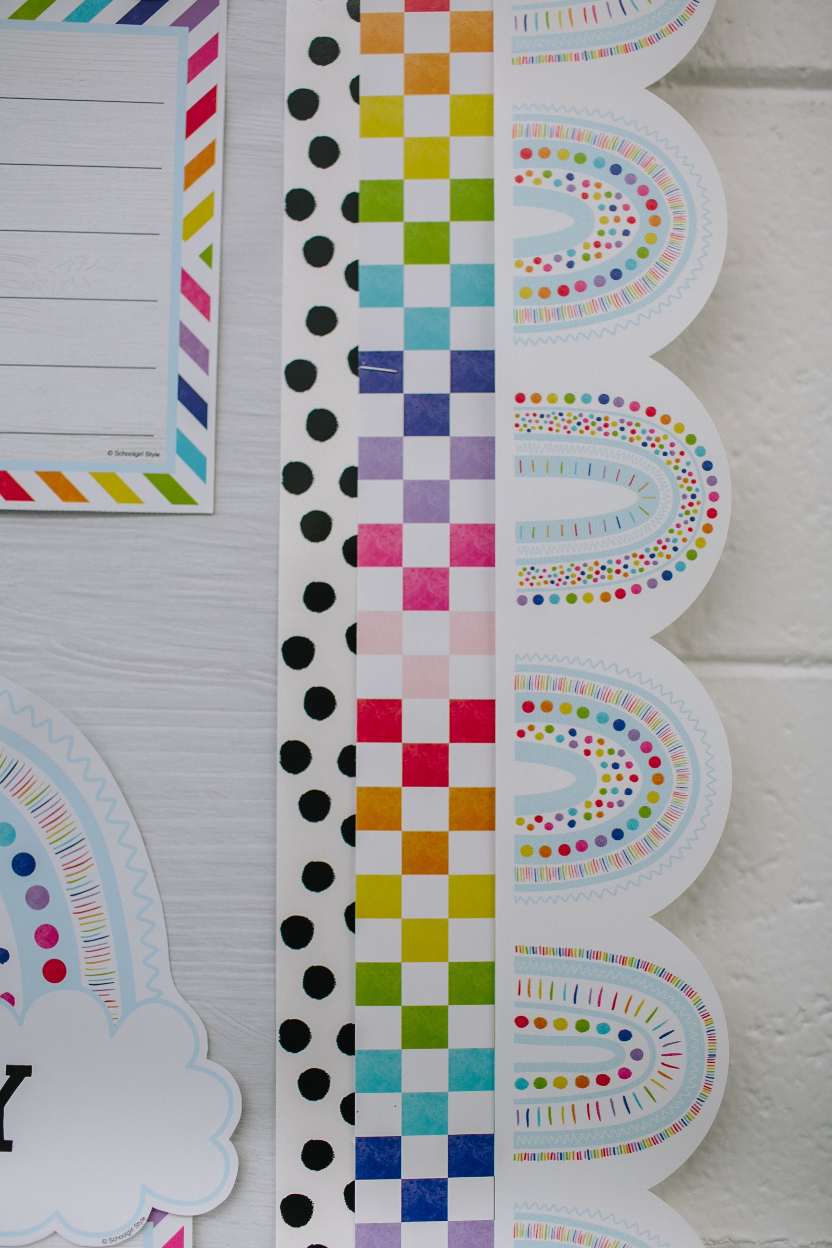Looking for creative ways to style your new Schoolgirl Style bulletin board borders? Our border lookbook is packed with inspiration! Explore a wide variety of bulletin board border combinations, from bold and colorful to soft and neutral styles. Whether you're mixing patterns, layering textures, or coordinating with seasonal themes, this page is your go-to resource for fresh ideas that bring your classroom walls to life.