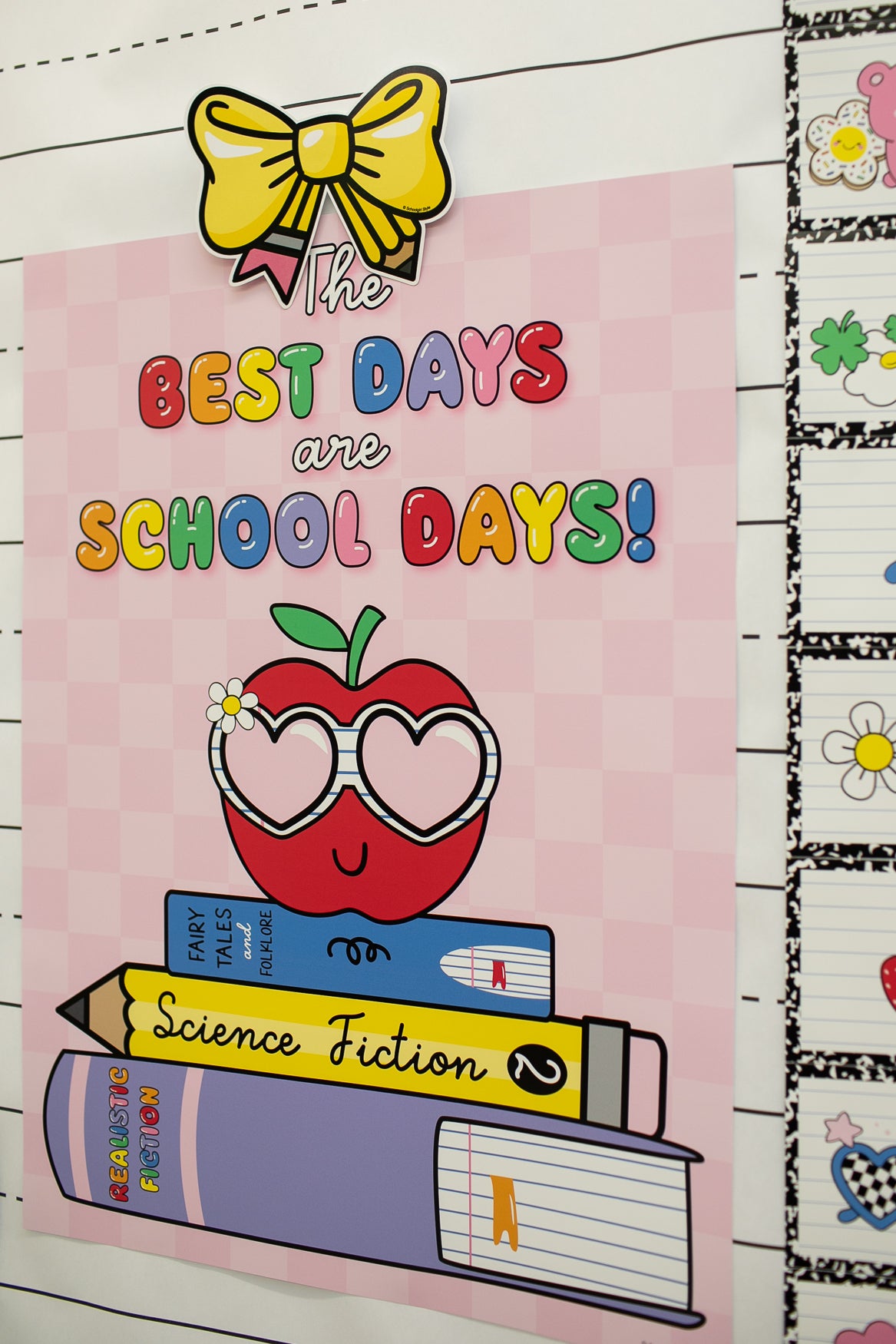 Welcome to School Days! Every day here feels like the first day of school, filled with joy and excitement. This rainbow classroom decor collection celebrates the classic charm of school days with a bold and colorful twist. Think vintage schoolhouse vibes, primary hues, and cheerful designs that instantly brighten every corner of your classroom.