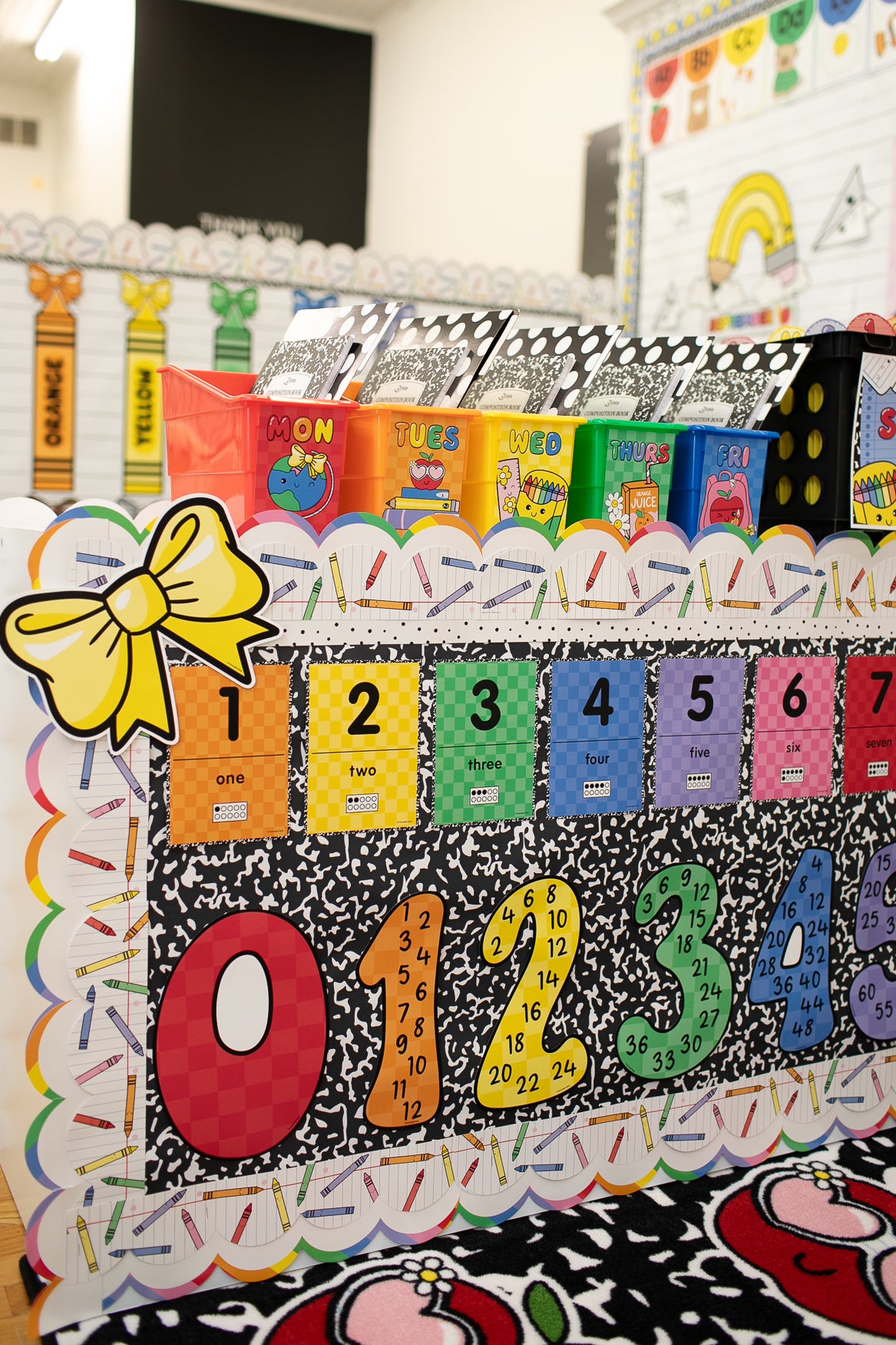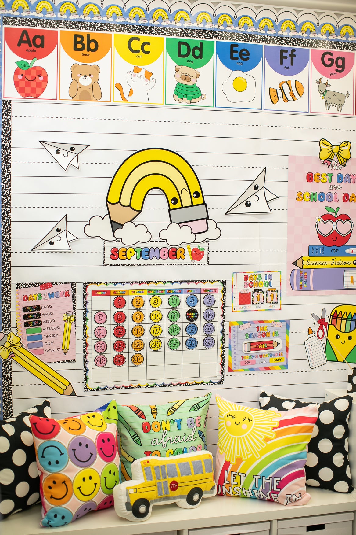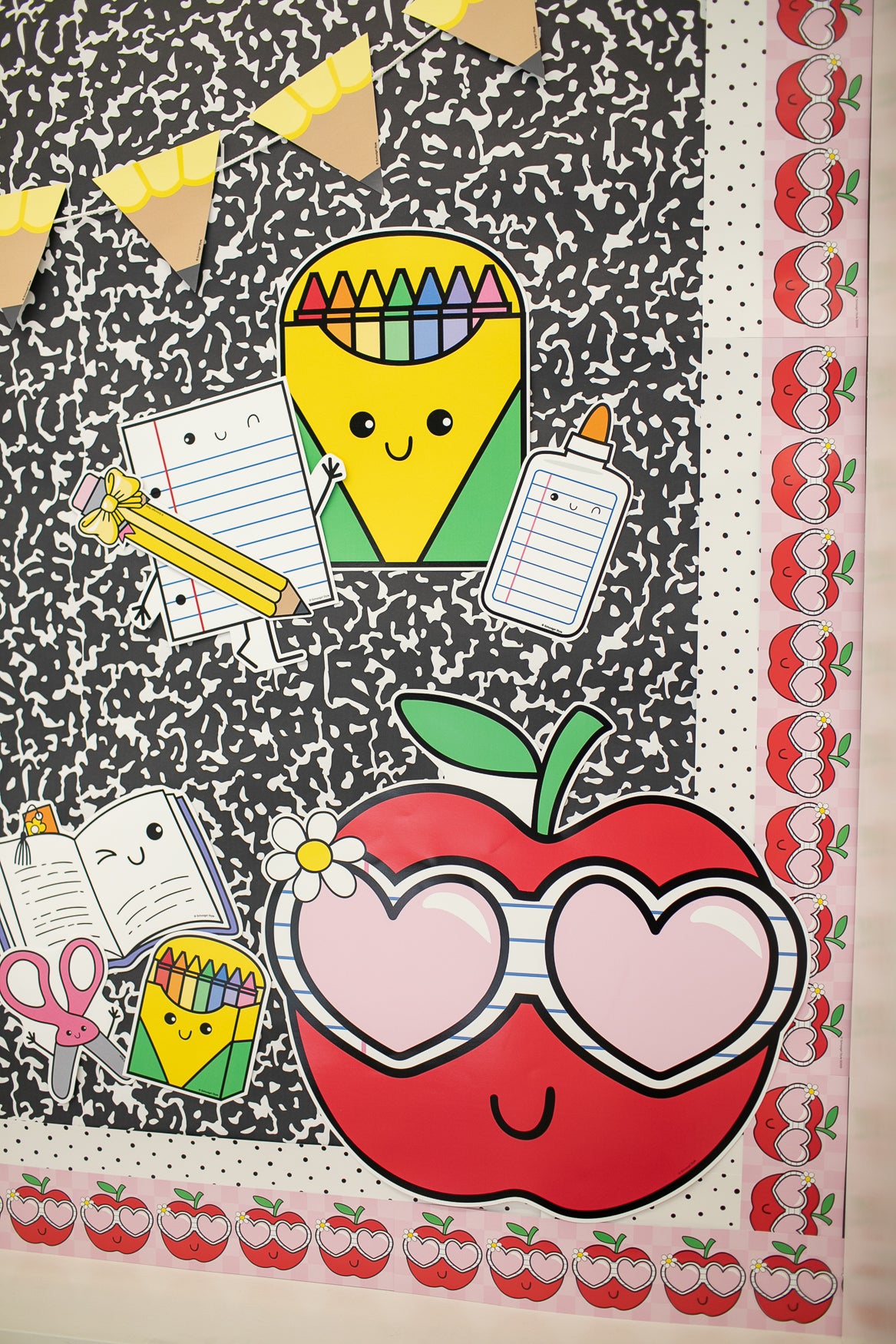 From alphabet banners and crayons to composition notebook prints, this collection brings back the magic of learning. Use this rainbow classroom decor to energize your classroom and create a space that feels happy and inviting. Decorate bulletin boards, learning stations, and classroom doors with nostalgic pieces full of personality and school spirit.