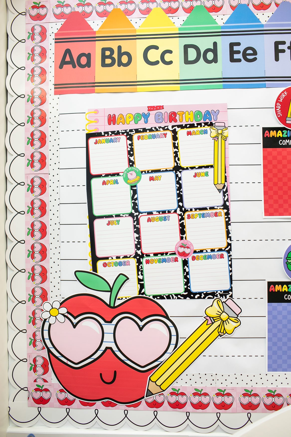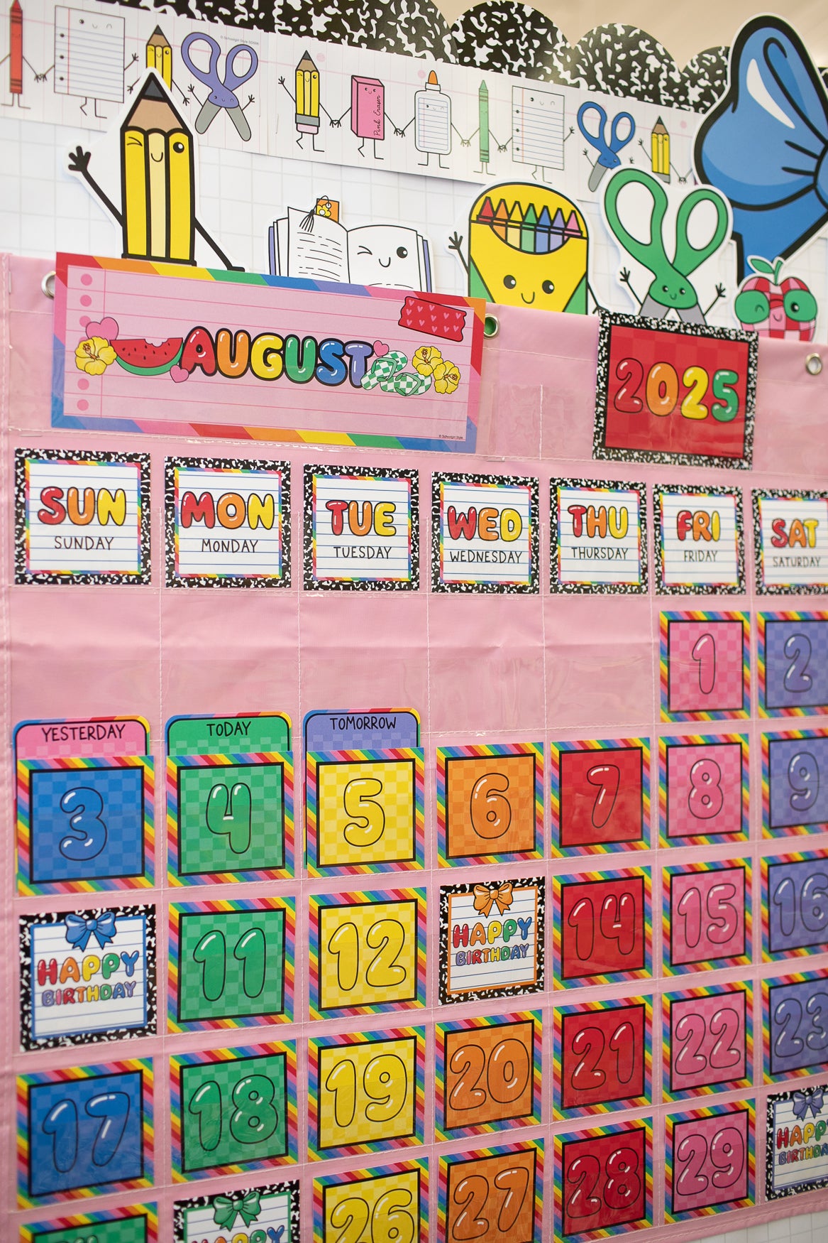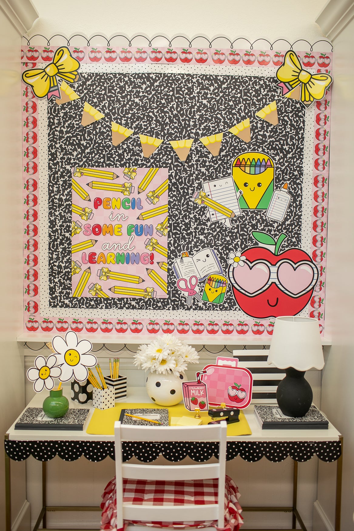 From alphabet banners and crayons to composition notebook prints, this collection brings back the magic of learning. Use this rainbow classroom decor to energize your classroom and create a space that feels happy and inviting. Decorate bulletin boards, learning stations, and classroom doors with nostalgic pieces full of personality and school spirit.