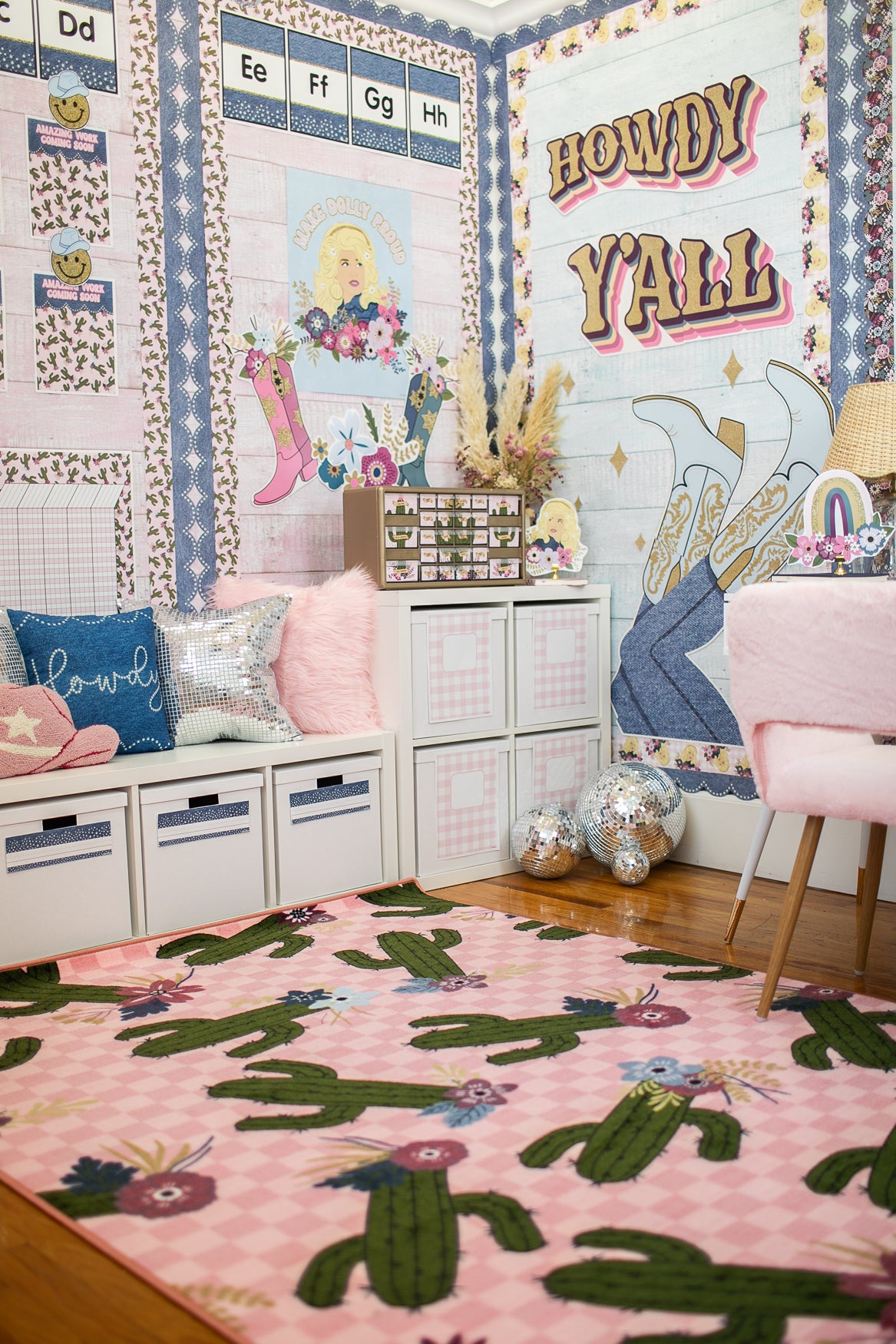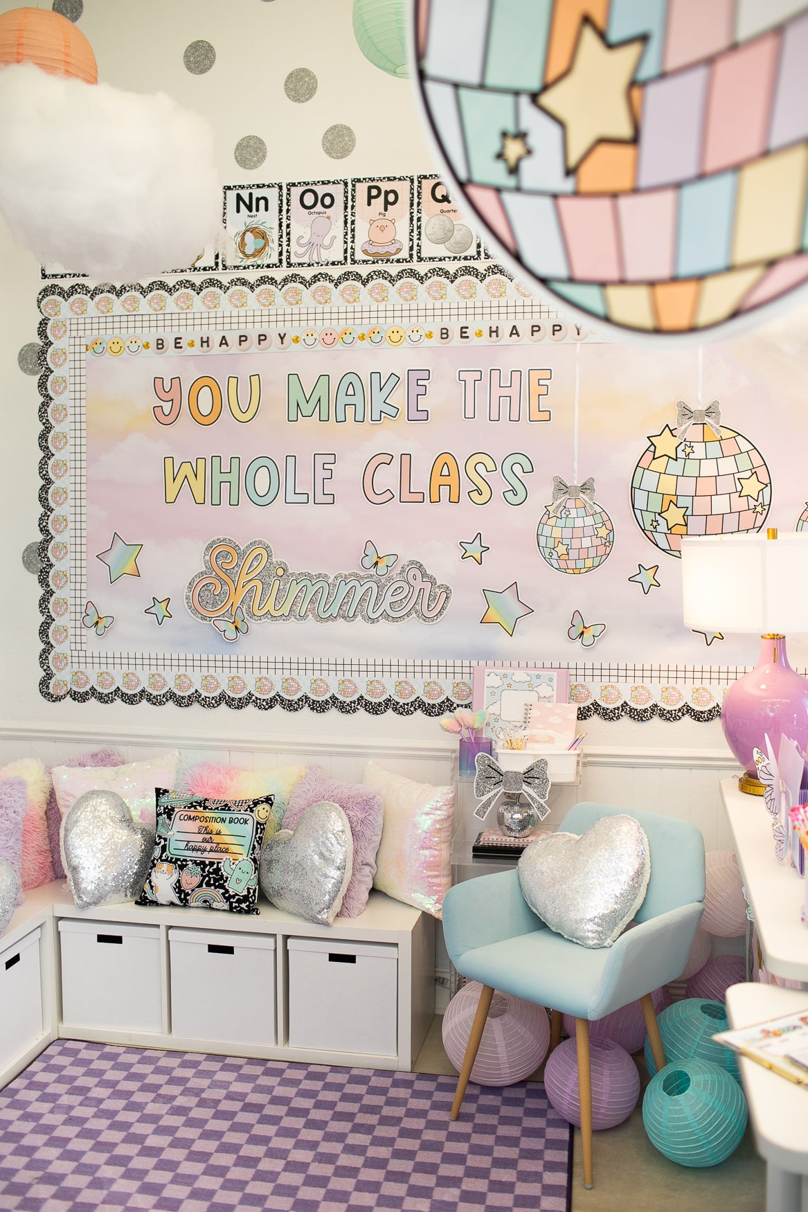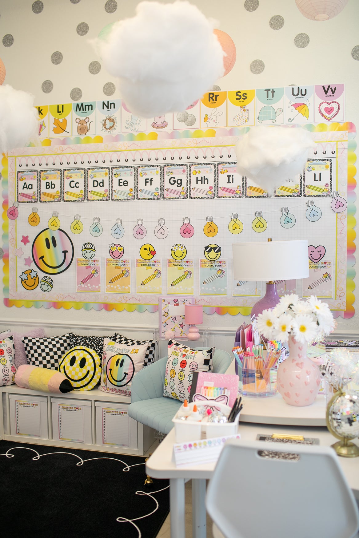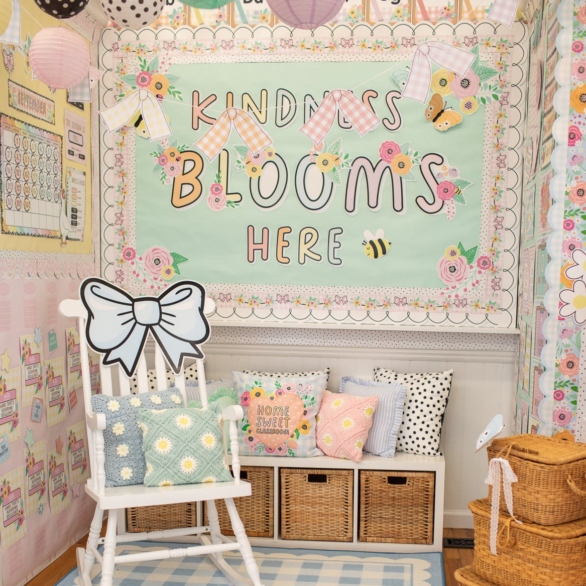 Rotate seasonal or thematic accent pieces to keep the classroom fresh