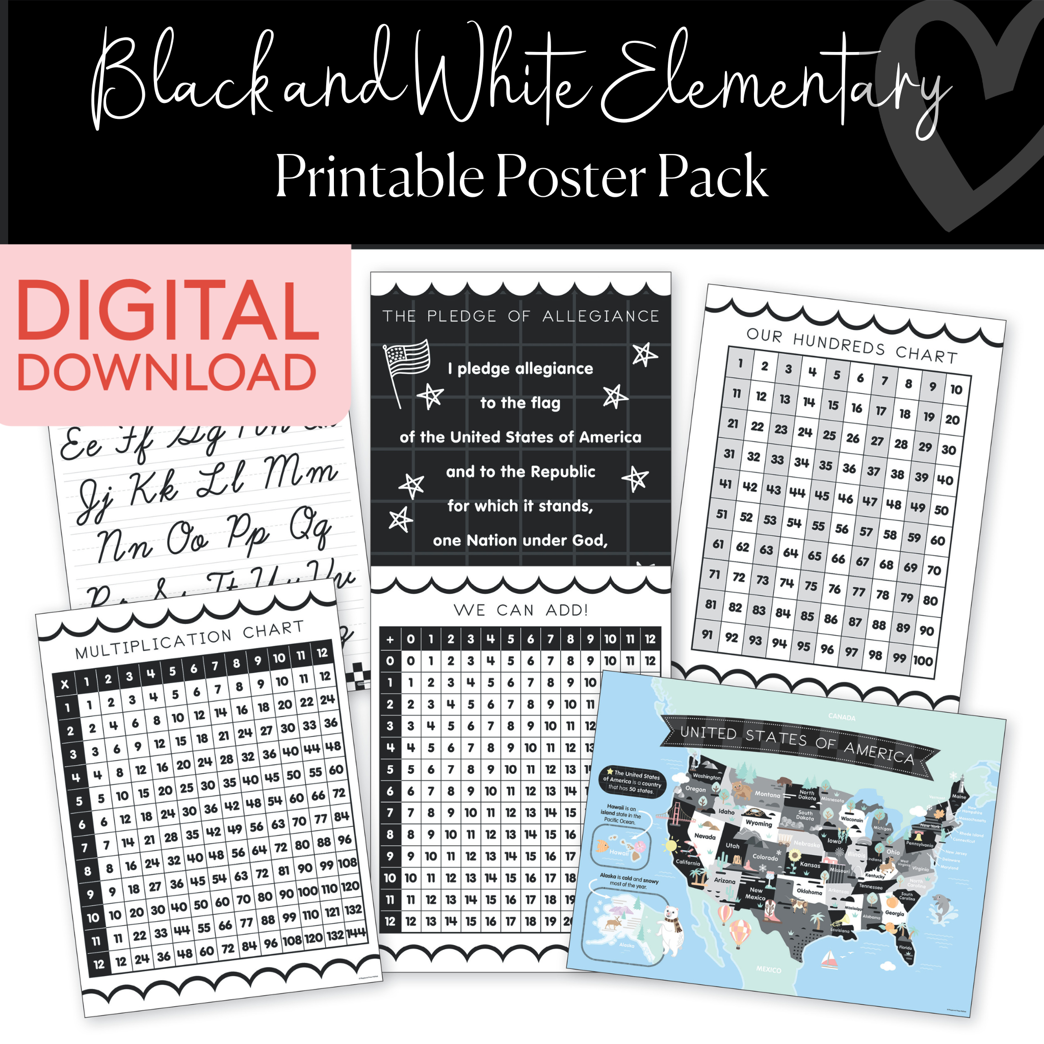 What’s Included in the Printable Elementary Poster Pack: