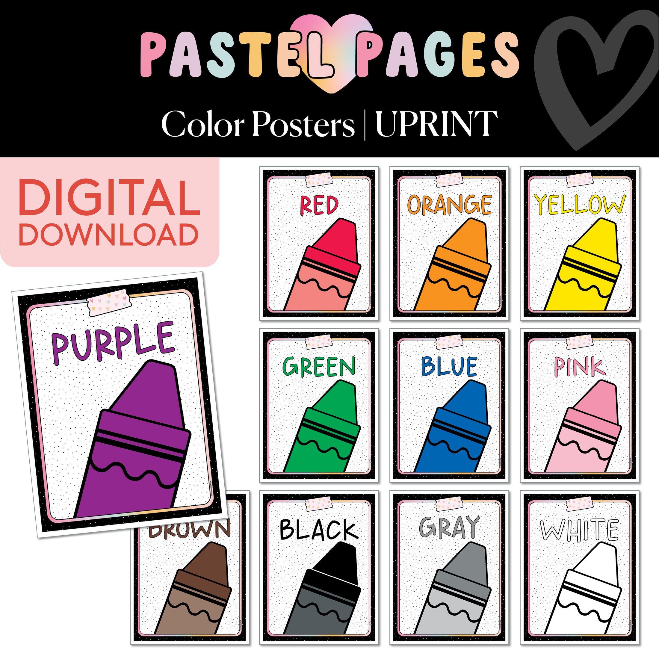 Learning colors can be fun and adorable with the Pastel Pages Printable Color Posters! Featuring bright crayon illustrations and bold, easy-to-read color names, these posters help young learners connect colors to their names in a playful, stylish way. The clean black-and-white design adds a calming touch while making color recognition exciting and engaging!