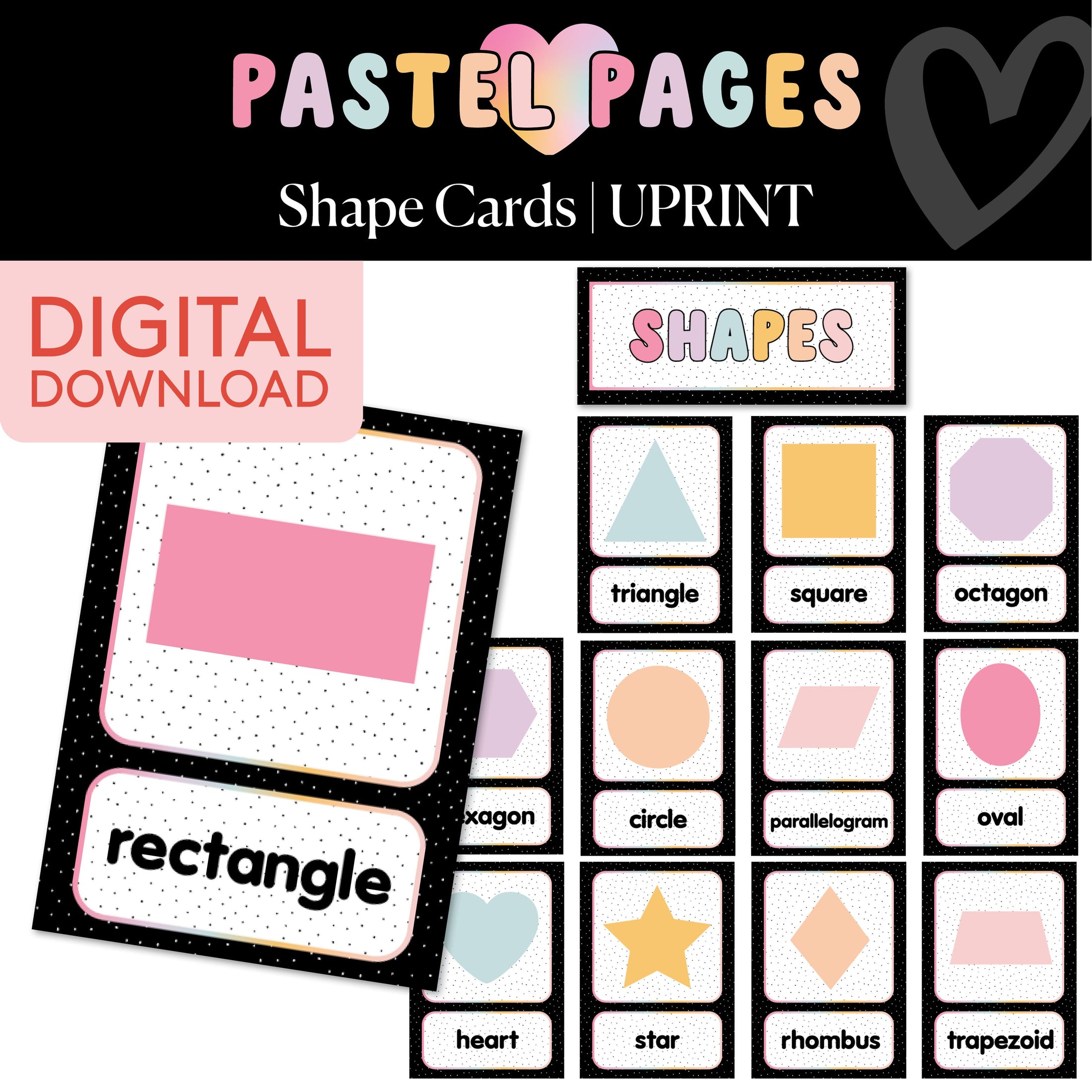Help your students grasp basic geometry concepts with the Pastel Pages Printable Shape Cards! Featuring bold, easy-to-read shape names, math visuals like these are crucial for helping students connect abstract concepts to concrete examples, reinforcing their understanding and making learning fun!