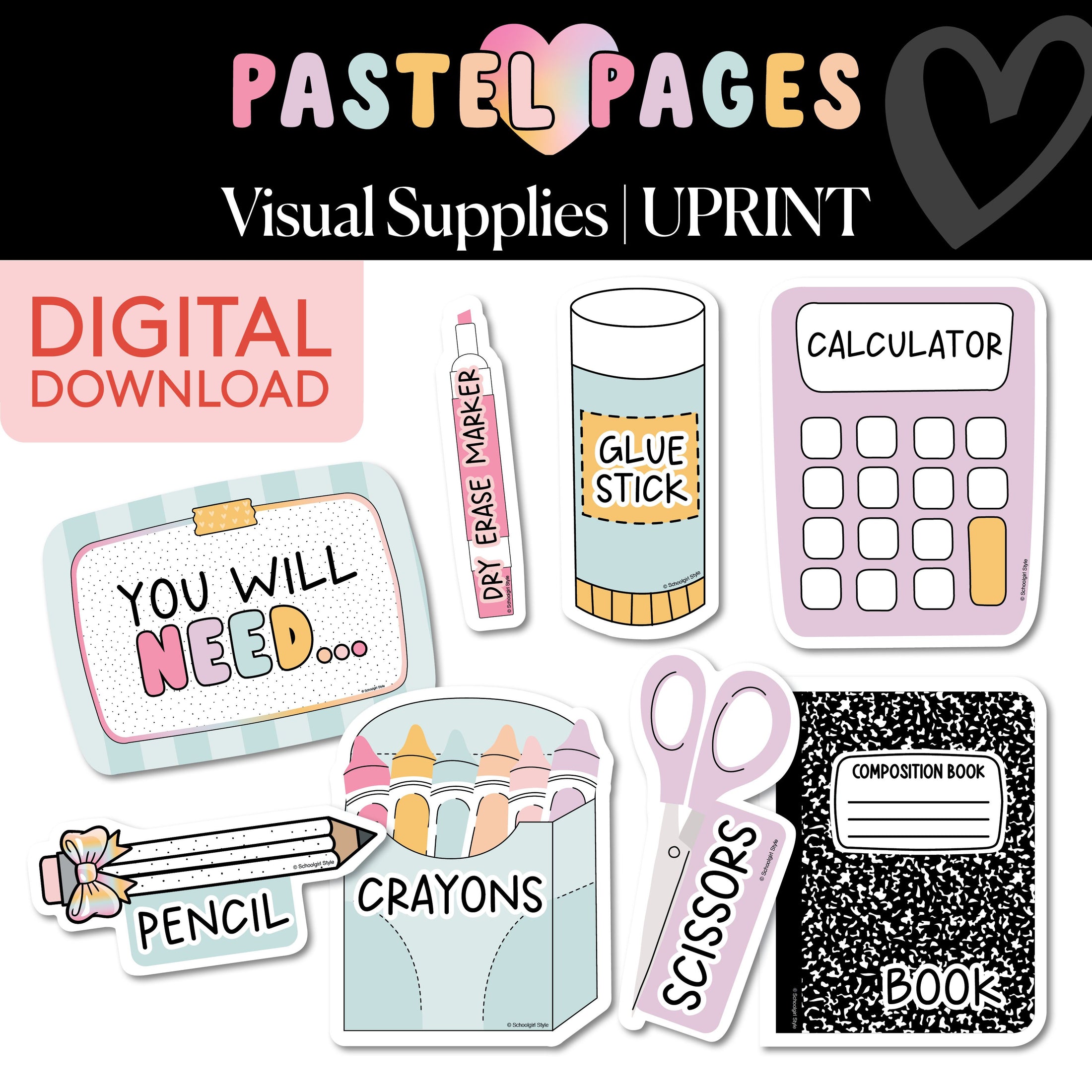 Whether you're letting students know what they’ll need for a lesson or just organizing your materials, these Pastel Pages Visual Supplies make it easy to highlight supplies like pencils, crayons, scissors, and more. Clear, fun, and functional—perfect for keeping your classroom running smoothly and stylishly!