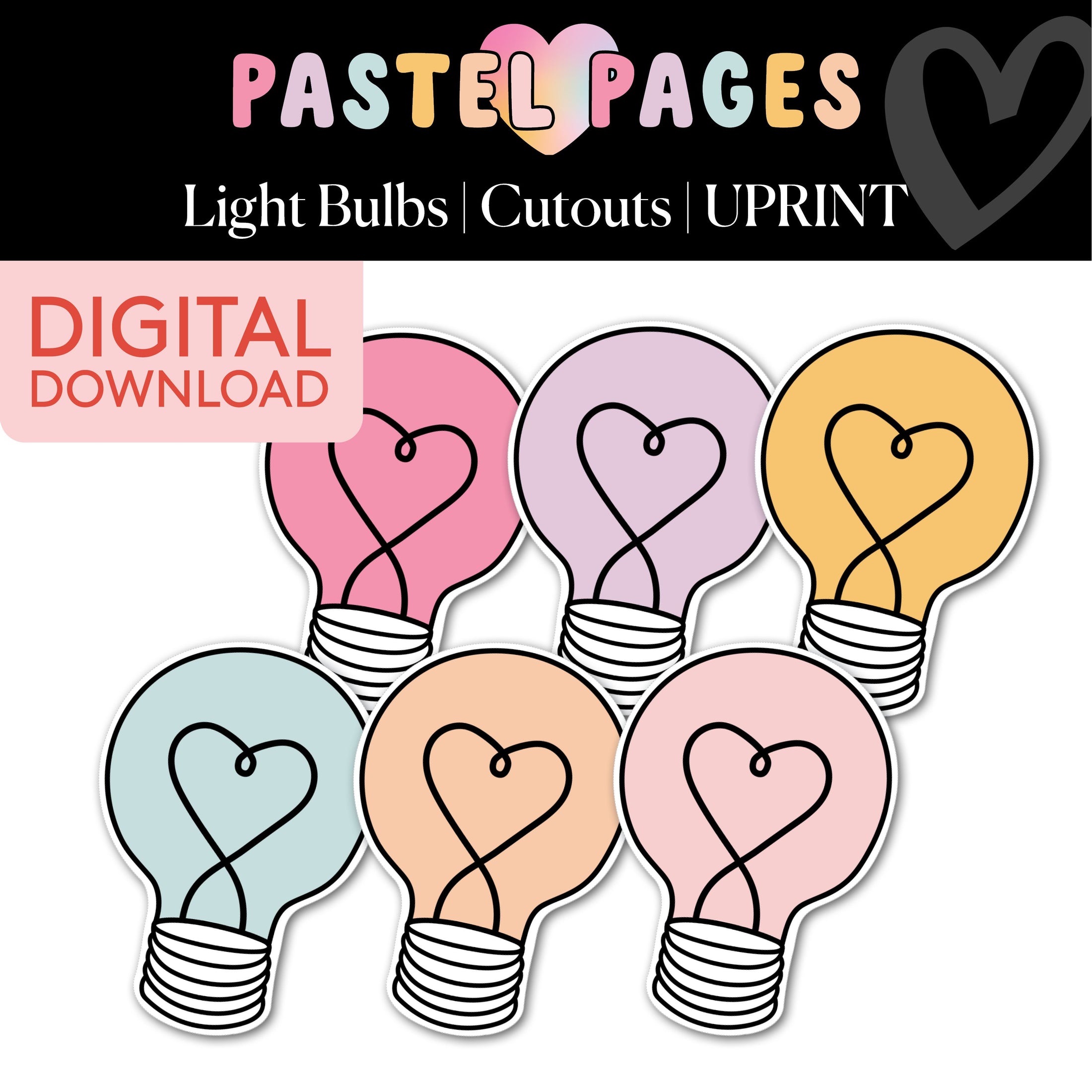 Brighten up your classroom with these Boho Pastel Lightbulbs Bulletin Board Cutouts! With their soft pastel colors and cute, whimsical design, these lightbulbs will light up any space with creative energy. Perfect for adding a pop of pastel charm to your Pastel Pages-themed classroom or any reading corner, these cutouts are sure to inspire bright ideas and a cozy, inviting vibe!