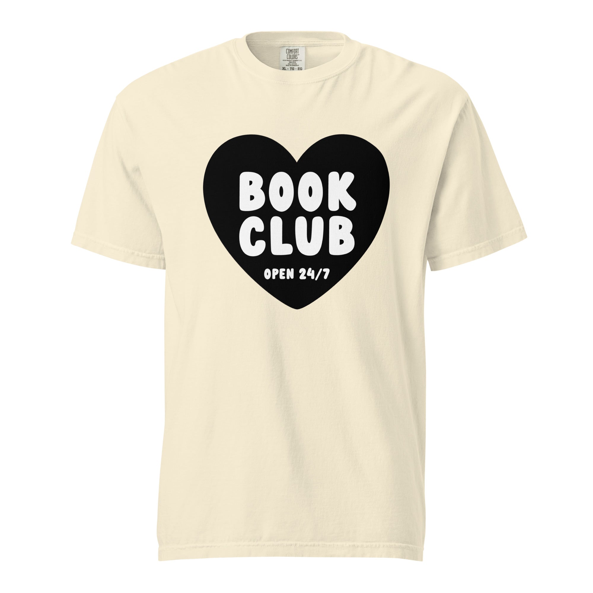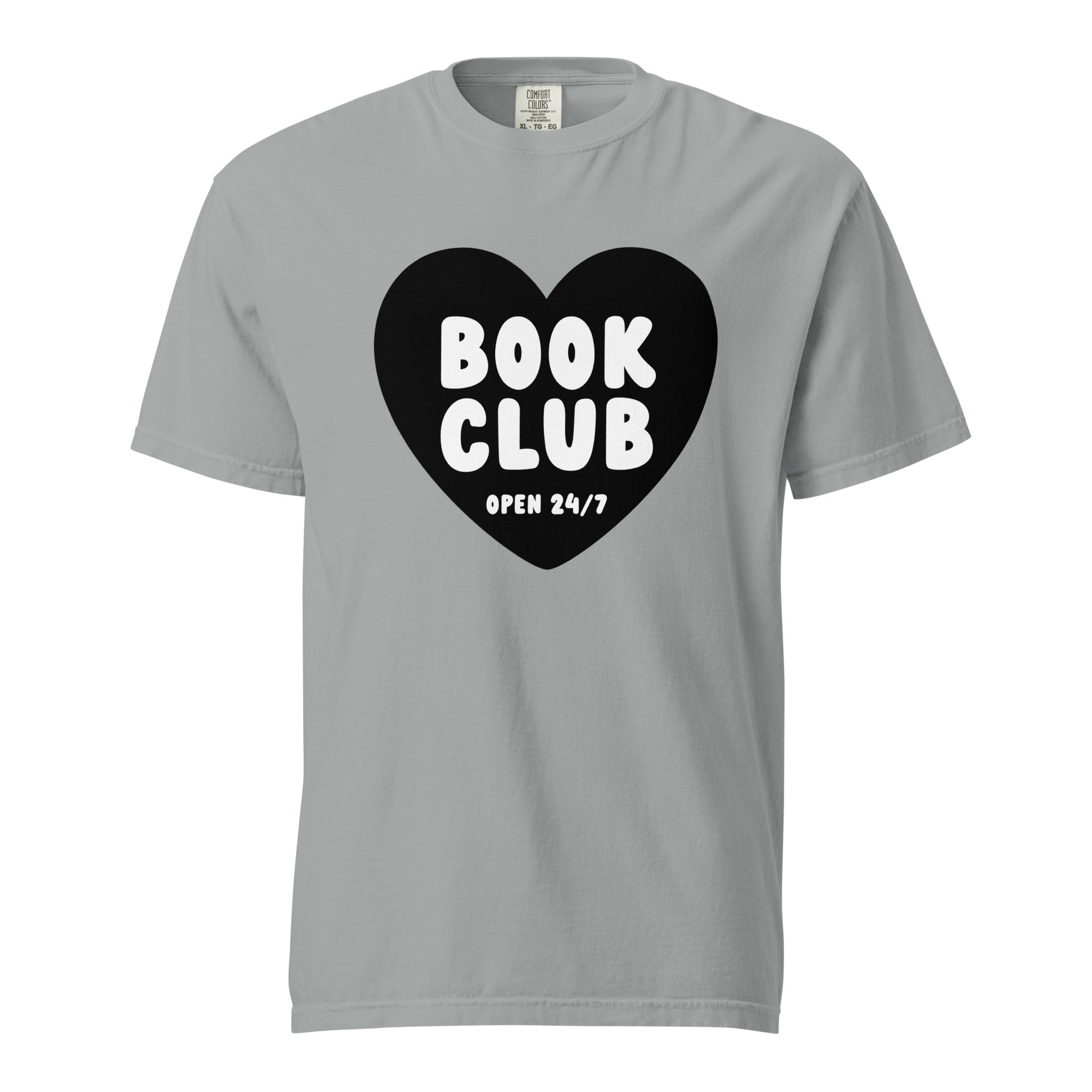 Featuring a heart-shaped graphic and bold lettering, this tee is for the educators, book lovers, and night readers who know the club is always open. Cozy, cool, and classroom-ready.