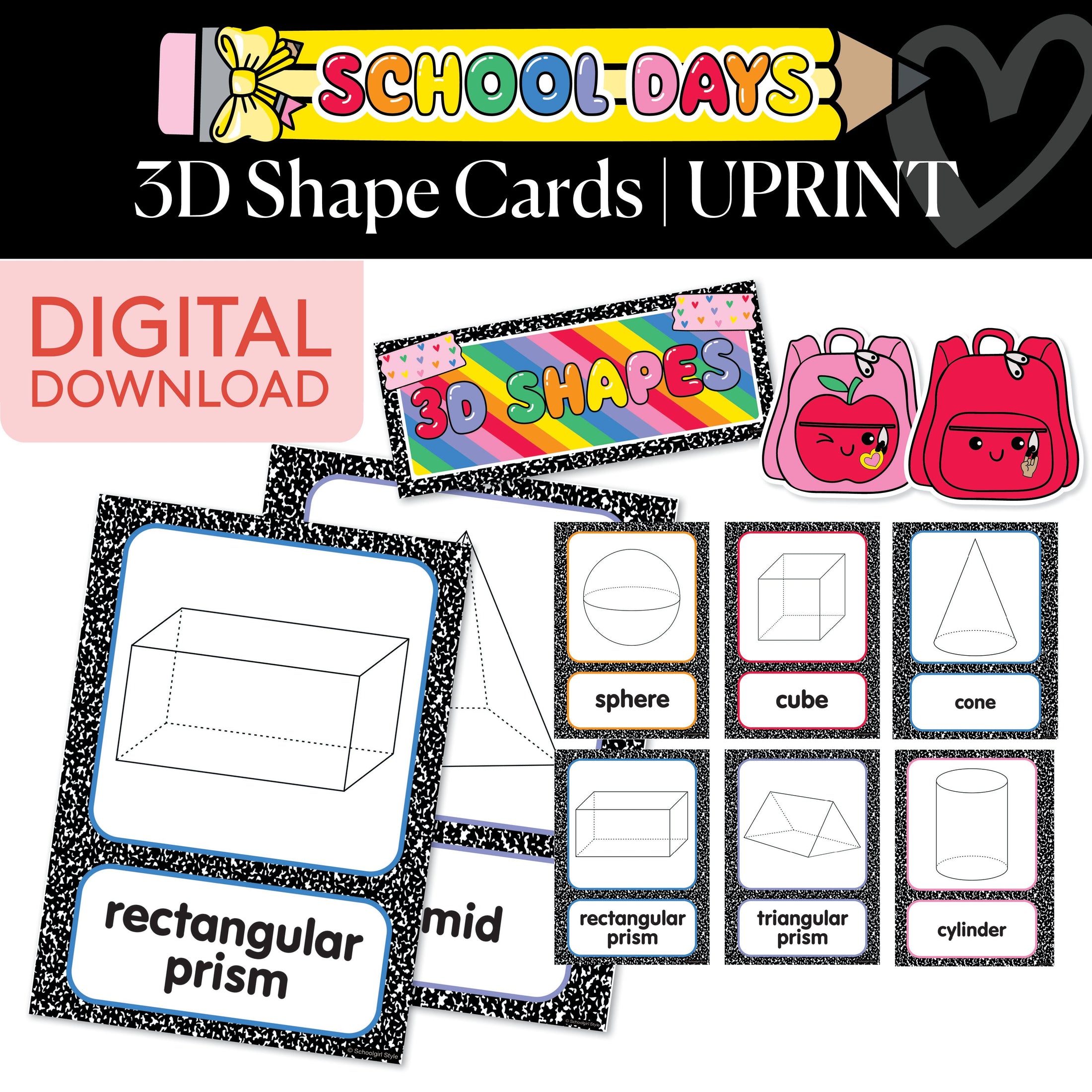 Help your students grasp basic geometry concepts with the School Days 3D Printable Shape Cards! Each card features a bold, easy-to-read shape name with a colorful checkerboard background and a visual representation of the shape, making learning fun and interactive. The playful design, complete with adorable pink bows, adds an extra touch of vintage charm to your classroom. These math visuals are crucial for helping students connect abstract concepts to concrete examples, reinforcing their understanding and making learning fun!