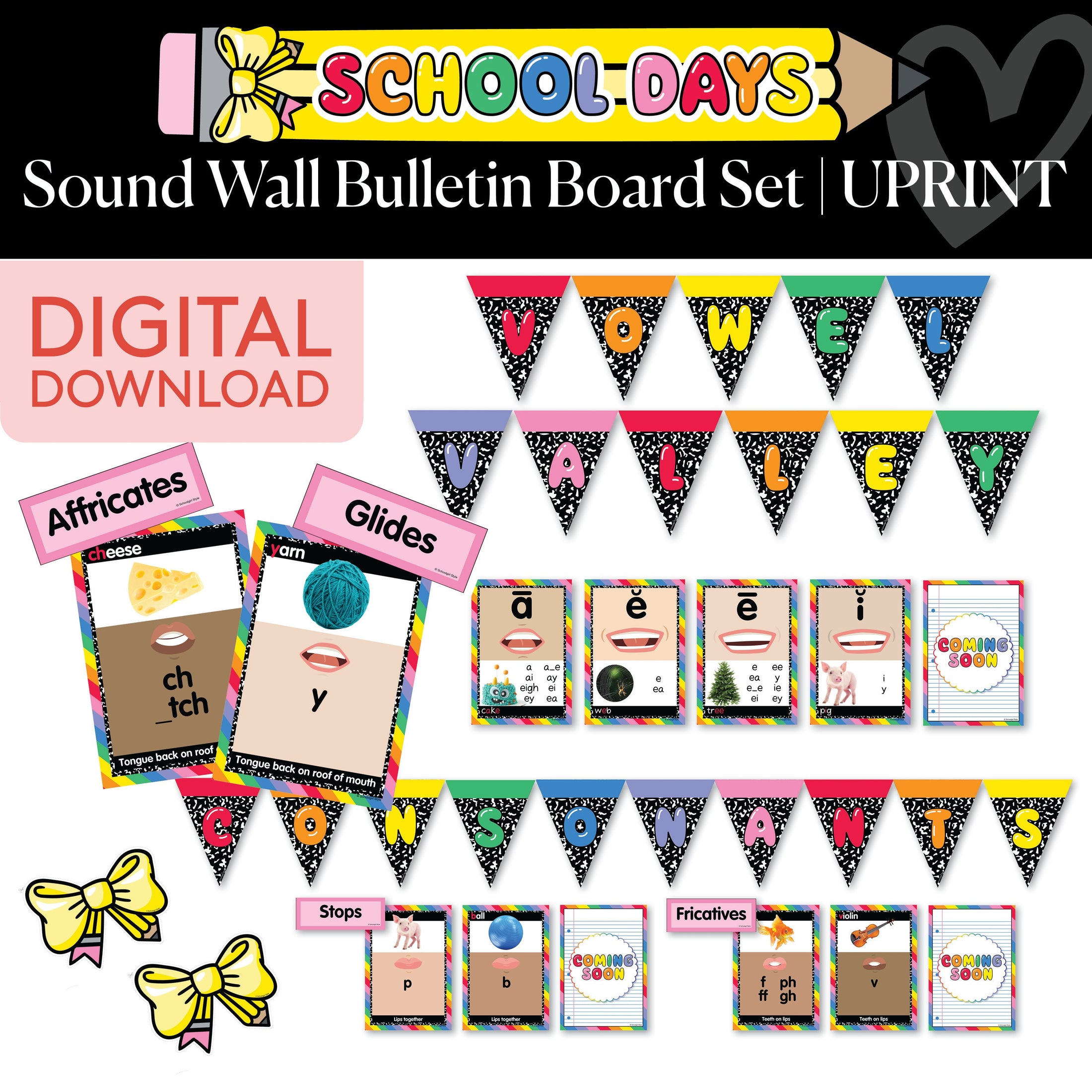 This School Days Sound Wall Bulletin Board Set featuring Vowel Valley and a variety of sound categories like Affricates, Glides, and Stops, helps students connect sounds to letters in a visual and interactive way! The Vowel Valley portion is particularly helpful in reinforcing vowel sounds, making it easier for young learners to grasp their speech patterns. A sound wall is a powerful tool for building foundational literacy skills, allowing students to see, hear, and repeat sounds in context, making the process of mastering letters and sounds more engaging and effective.