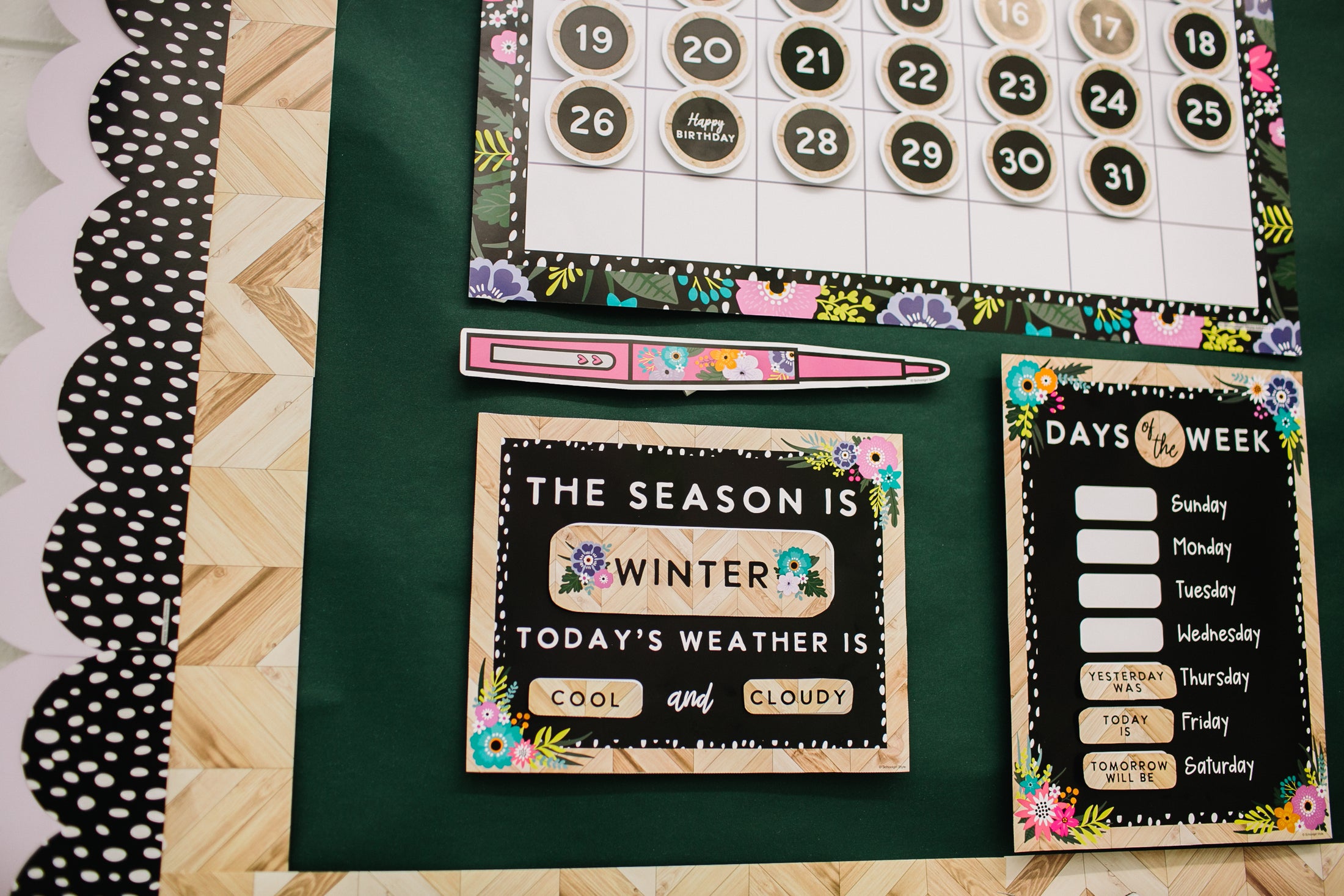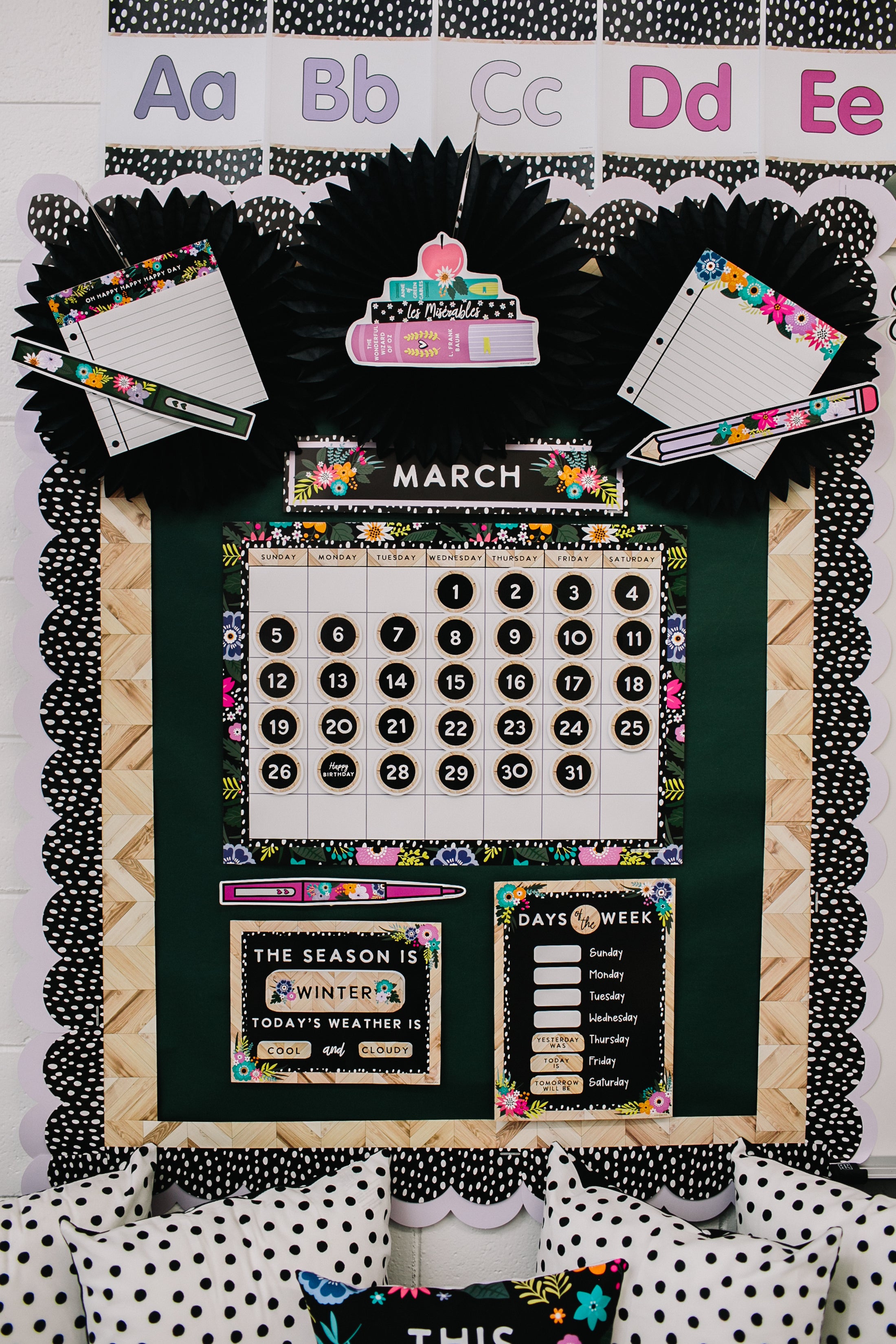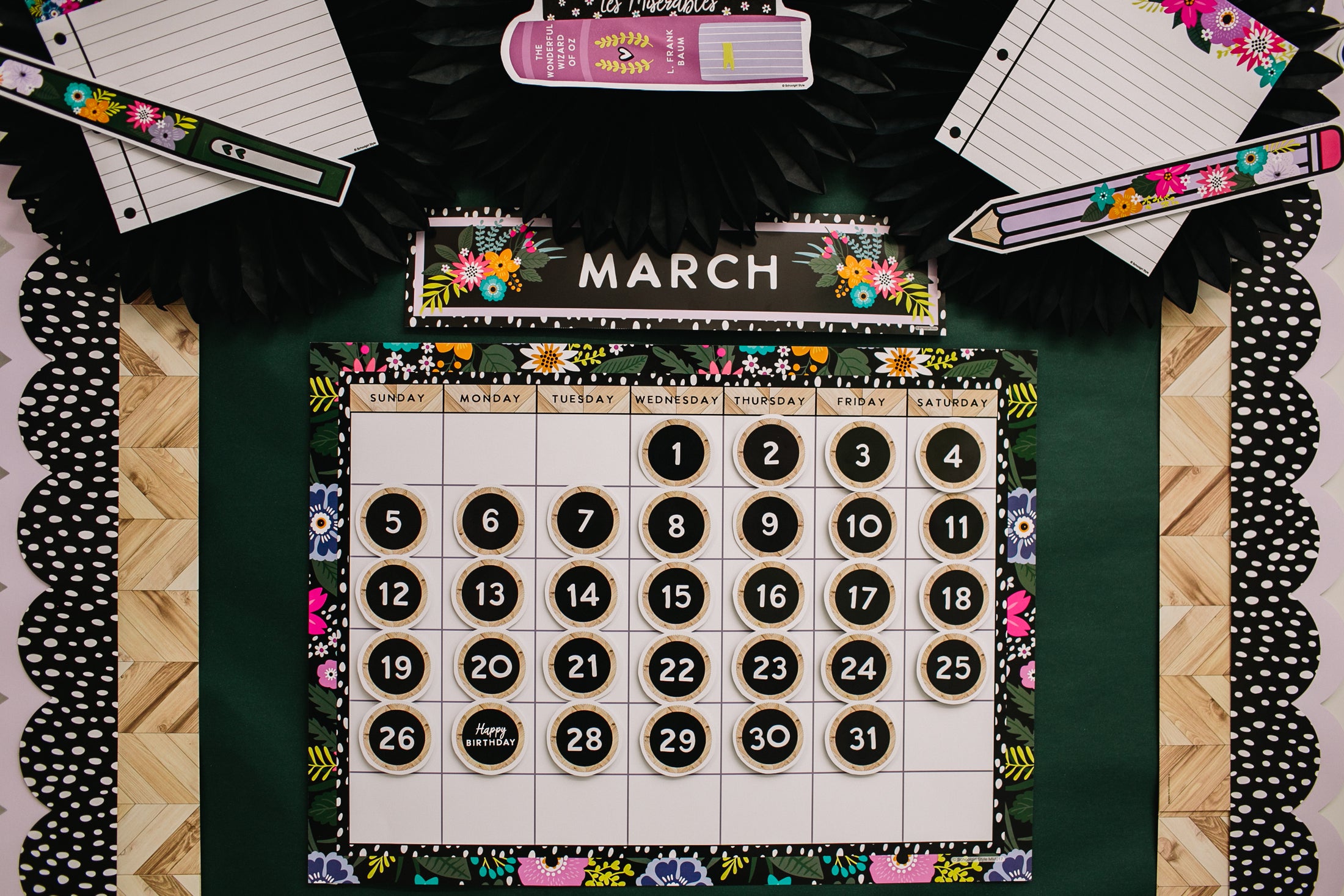 Floral Calendar Bulletin Board Set | Midnight Meadow