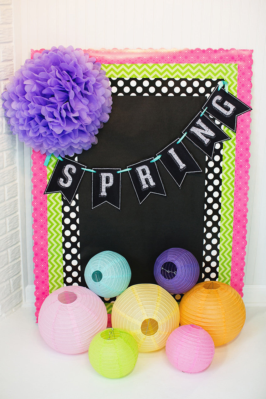 Summer: Picture it....Bright Turquoise, Hot Pink, and Yellow Sunshine accent the chalkboard pieces for a summer filled with learning!