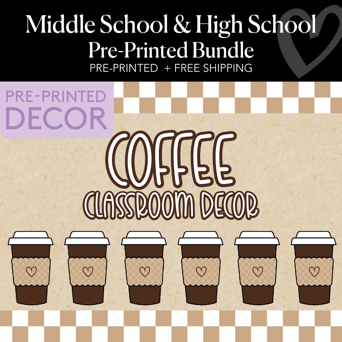 The Coffee Classroom Decor Middle School & High School Pre-Printed Bundle brings warm, coffeehouse vibes straight to your classroom—no printer required! Made with middle and high school spaces in mind, this collection features cozy browns, rich neutrals, and subtle coffee-themed accents that create a calm, focused atmosphere for older students. With all pieces printed, prepped, and shipped right to your door, this bundle makes setting up your classroom feel as easy (and satisfying!) as your morning cup of coffee.