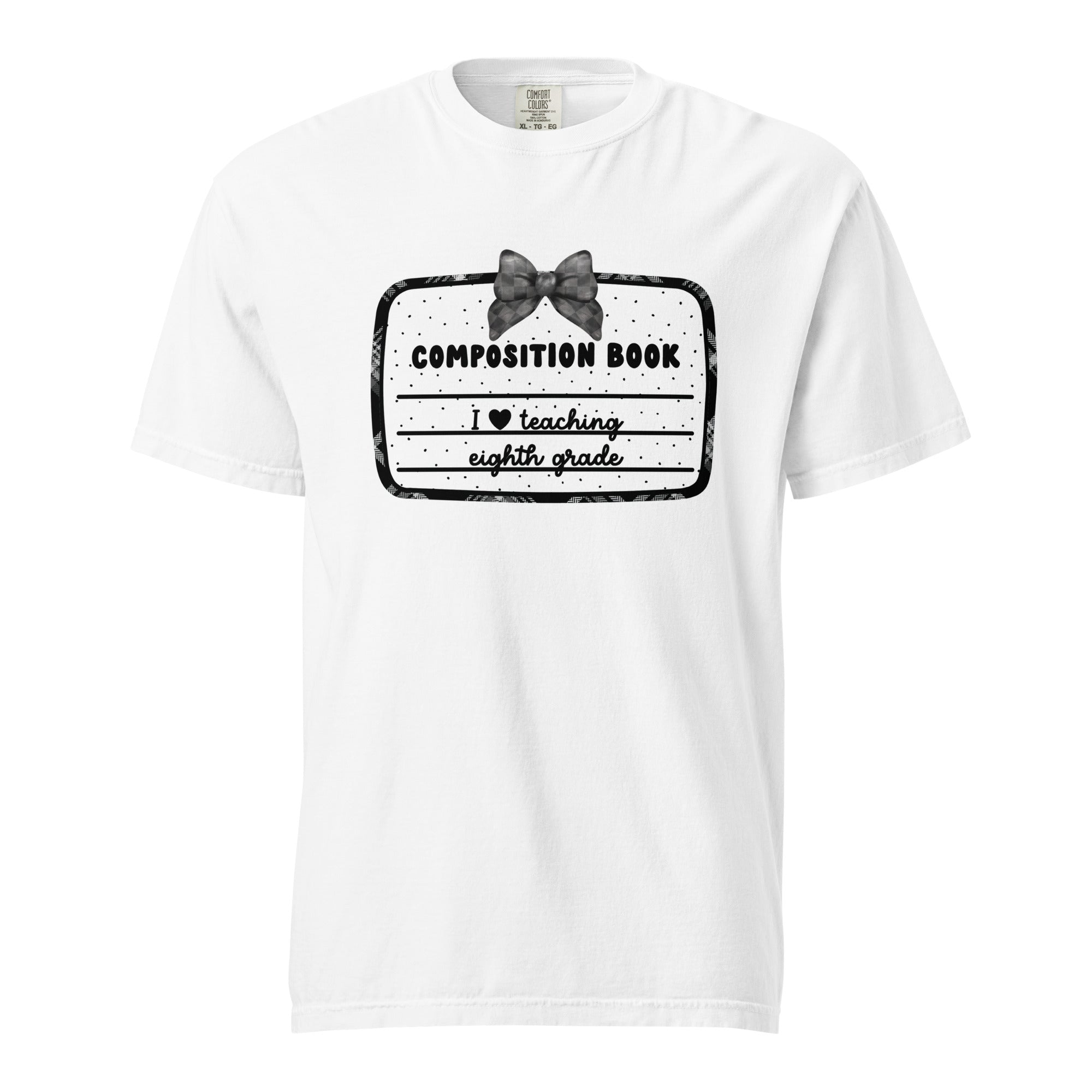 This design is a sweet throwback to composition books with a black-and-white palette and a darling bow on top. With the phrase I ❤️ teaching eighth grade, it’s a letter to your students—and a love letter for what you do.