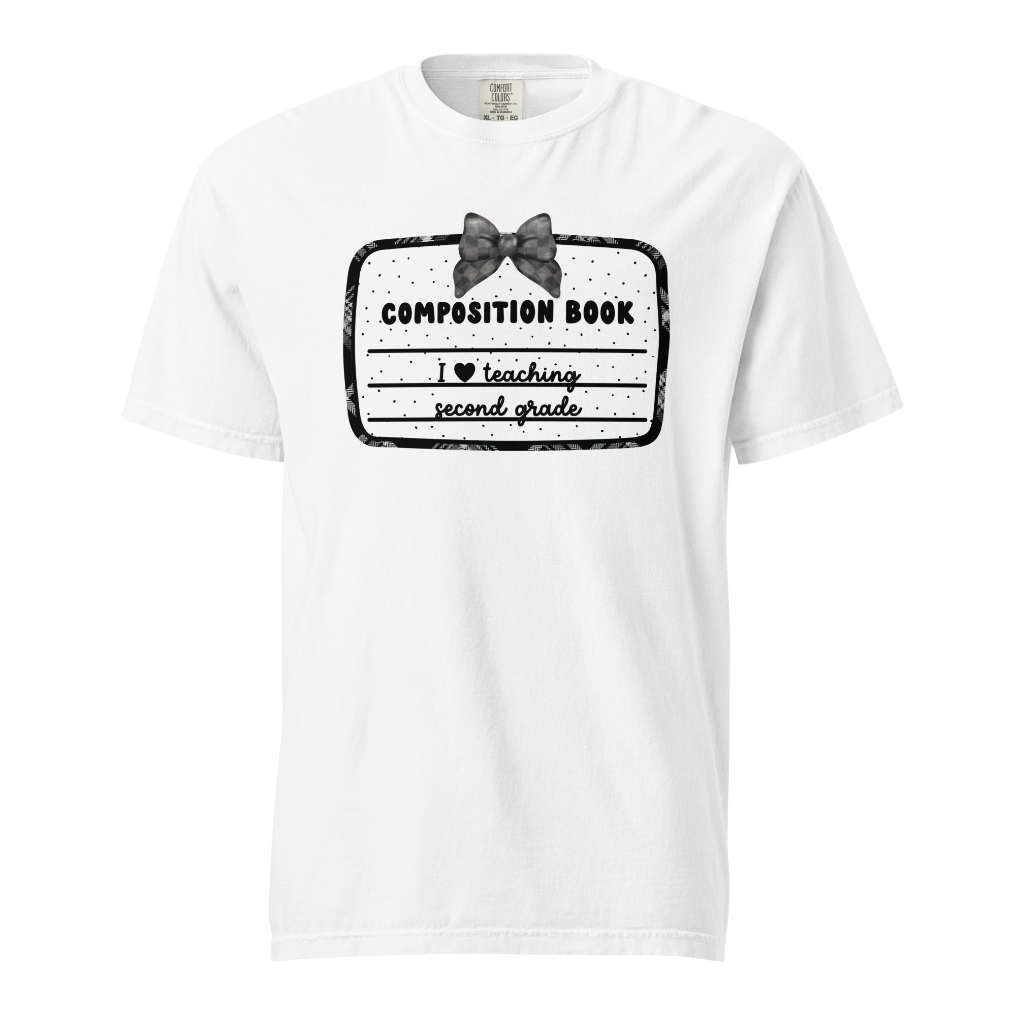 This design is a sweet throwback to composition books with a black-and-white palette and a darling bow on top. With the phrase I ❤️ teaching second grade, it’s a love letter to the littles—and your love for what you do.