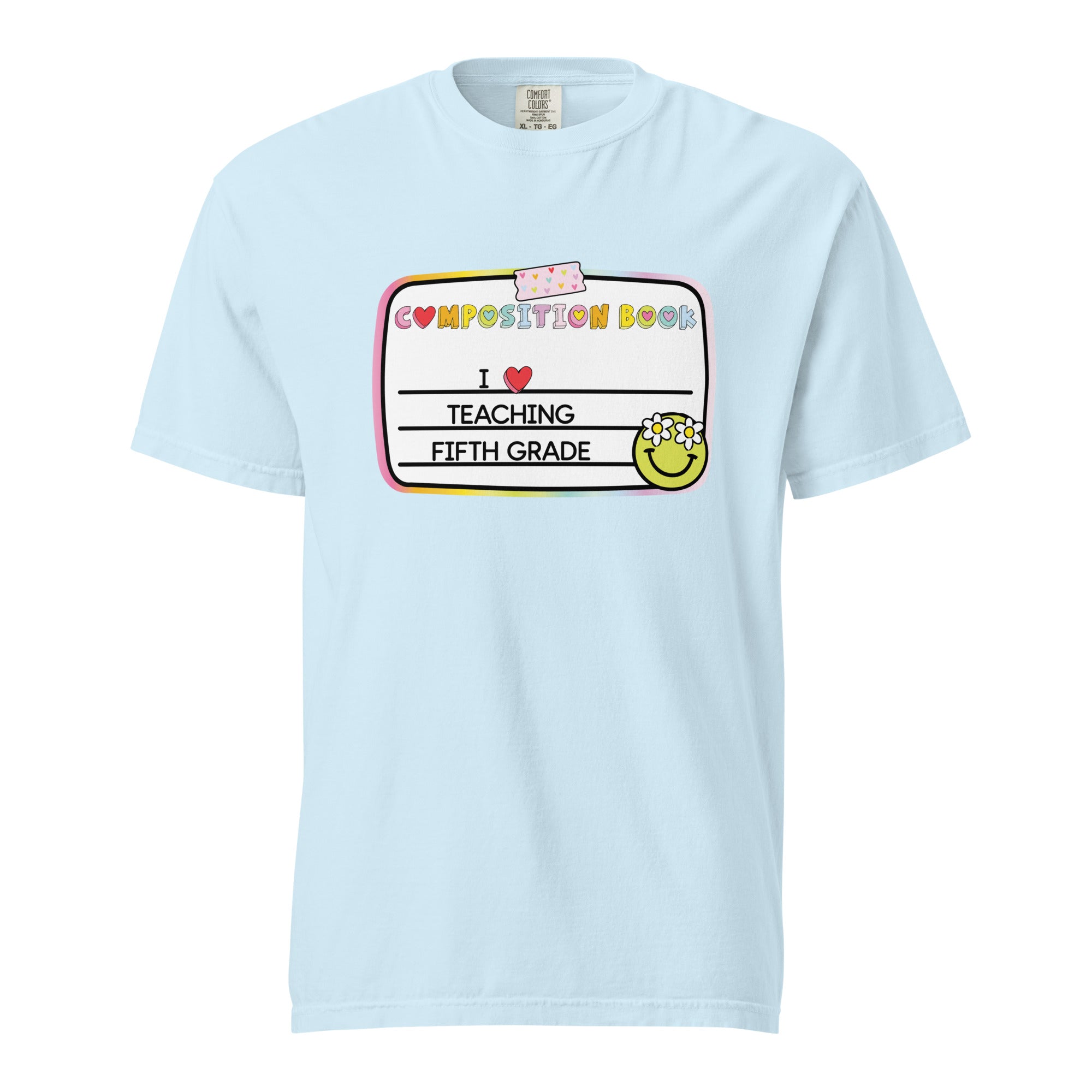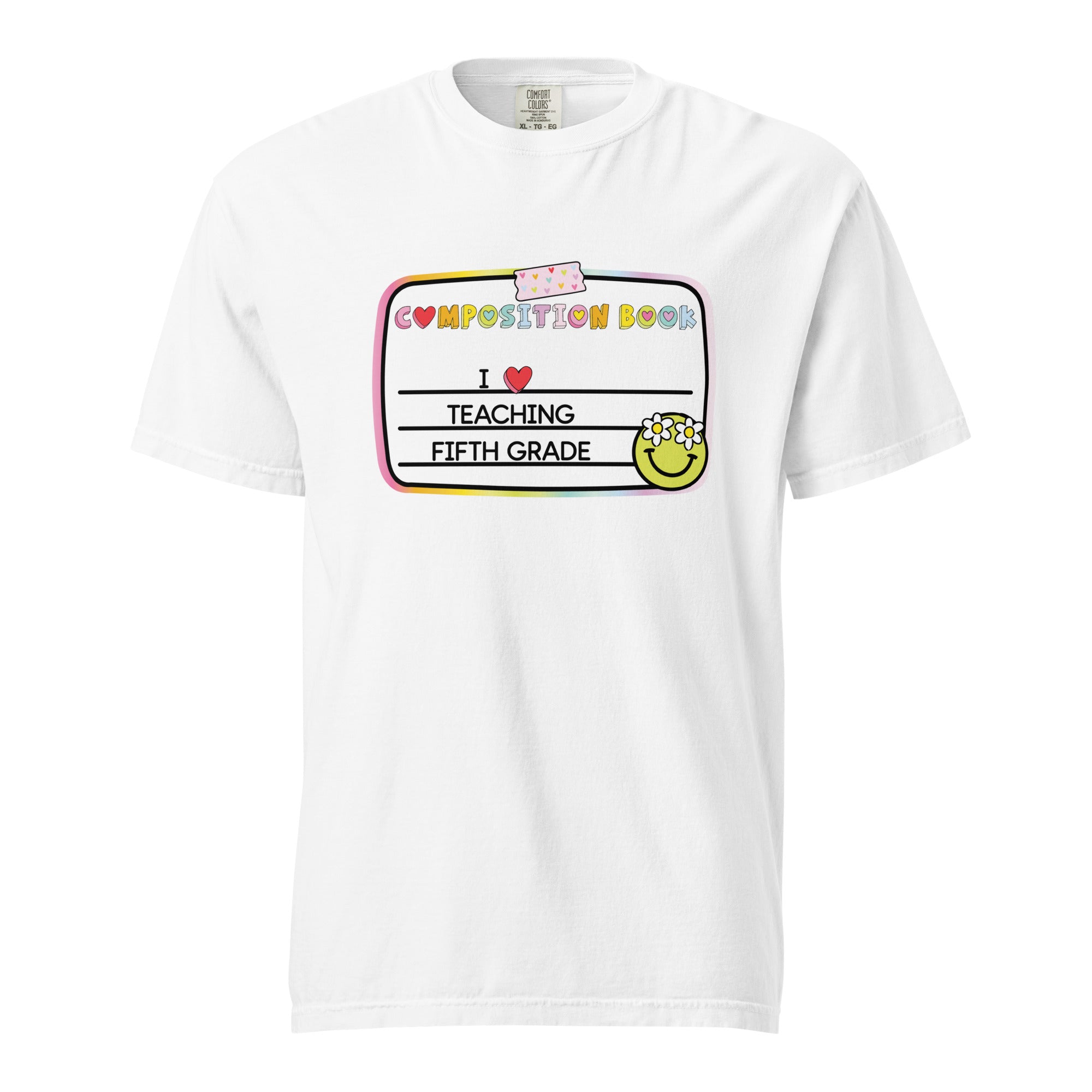 Celebrate your teaching journey with this I ❤️ Teaching Fifth Grade tee inspired by classic composition notebooks and classroom joy. It's a colorful way to show your heart for students and your love for growing minds.