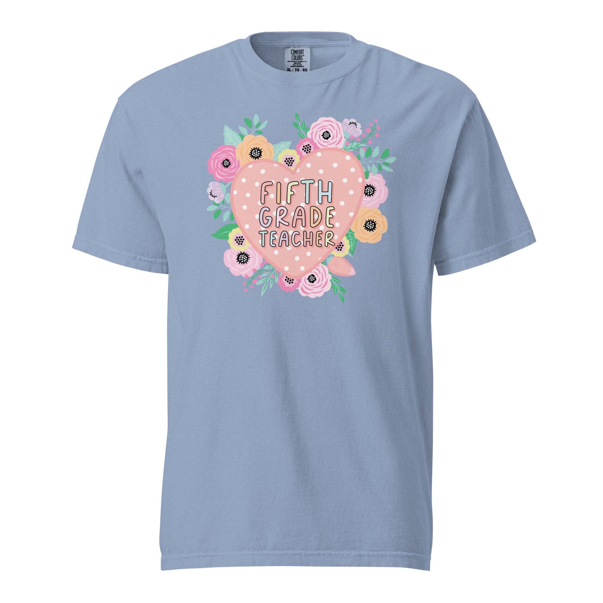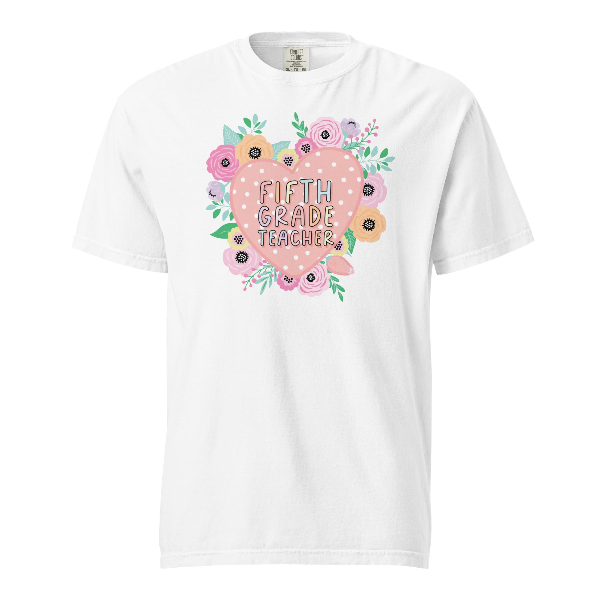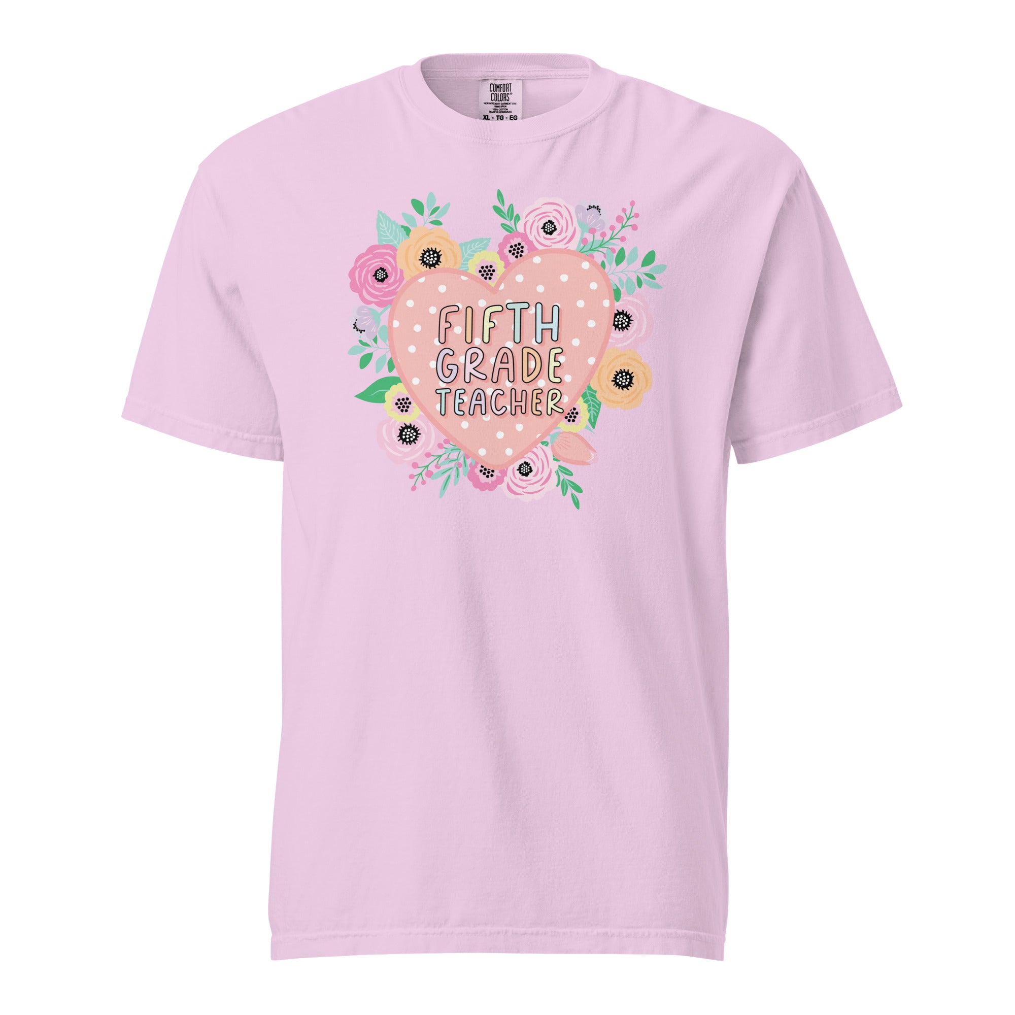 Celebrate your role as a fifth grade teacher in sweet cottage core style with this pastel heart and floral tee. Designed with teachers in mind, this shirt is a soft, stylish way to show your grade-level pride and classroom love.