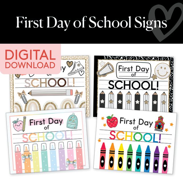 Kick off the school year with the cutest photo op ever! These First Day of School Signs are perfect for snapping a sweet pic of each student during the first week. Use the photos to send home as a keepsake for parents, start a fun end-of-year comparison project, turn it into a class activity, or hang them up as cheerful classroom decor. Choose your favorite style—pastel, rainbow, neutral, or black and white—to match your vibe. However you use them, these signs make the first day feel extra special!