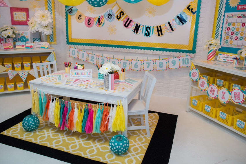 At Schoolgirl Style, we understand that when it comes to classroom decor ideas for preschool, elementary, middle school or high school, every detail matters. Shop in STYLE with our diverse selection of Classroom Decorations, Bulletin Board Borders, Classroom Rugs, Bulletin Board Paper, and Printable Classroom Decor, personally curated by Melanie Ralbusky, Founder and Creative Director. Whether you're in search of Teacher Resources, Seasonal inspiration, or delightful Teacher lifestyle additions, Schoolgirl Style stands as your one stop Teacher Shop.