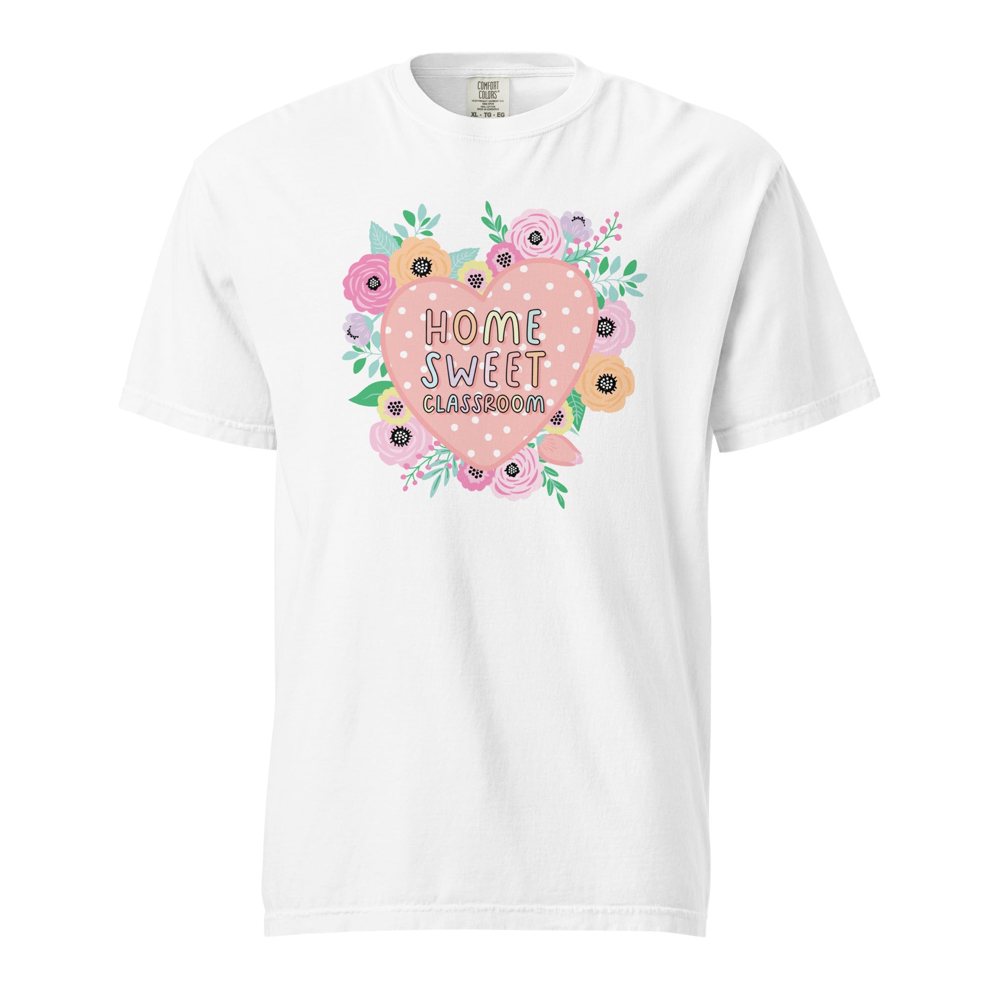 Welcome students with cozy cottage core charm in our “Home Sweet Classroom” t-shirt. Featuring pastel florals and a heartwarming message, it's perfect for teachers who want their classroom to feel like home. A must-have teacher tee for back to school or spring!