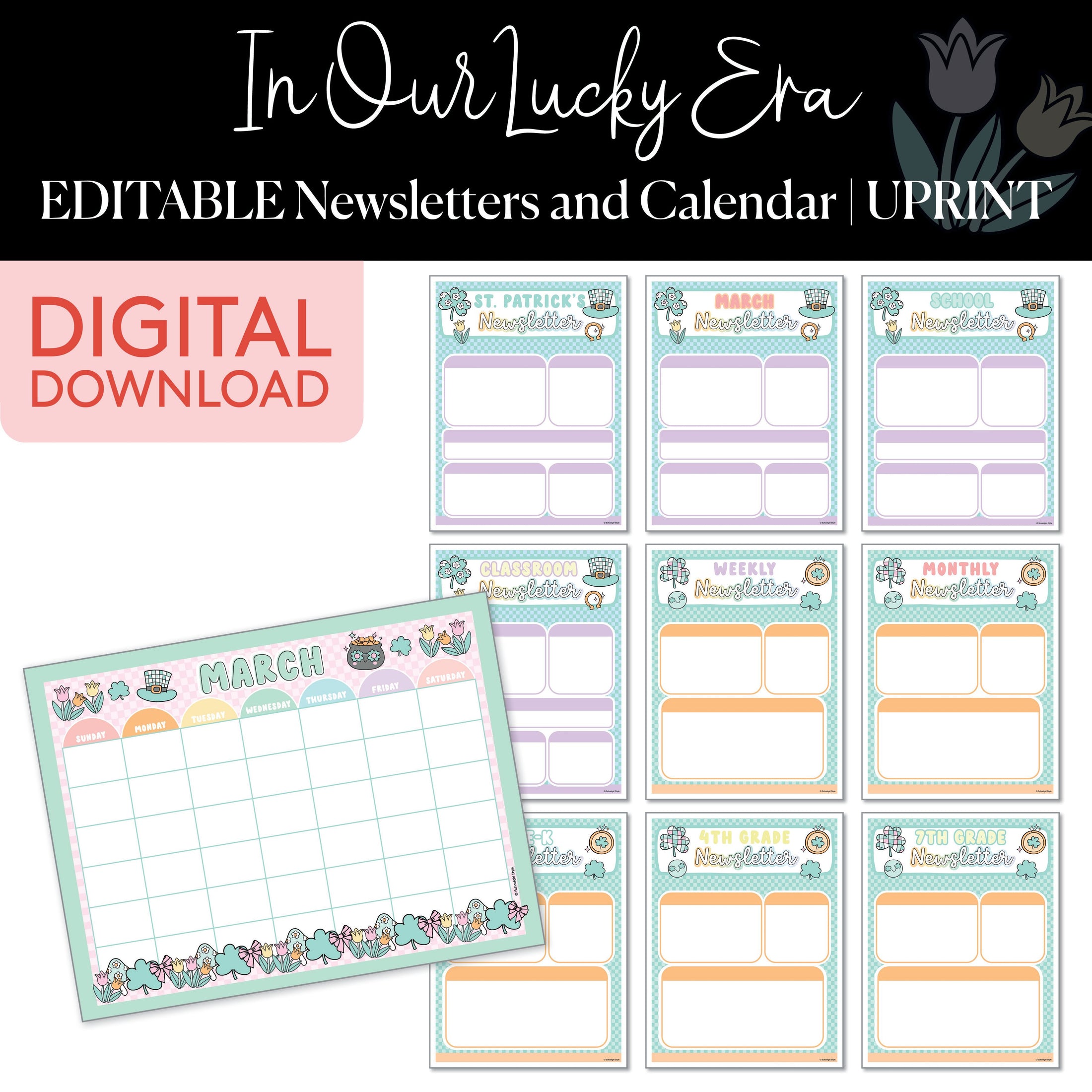St. Patrick's Day Editable Newsletters and Calendar Sheets!