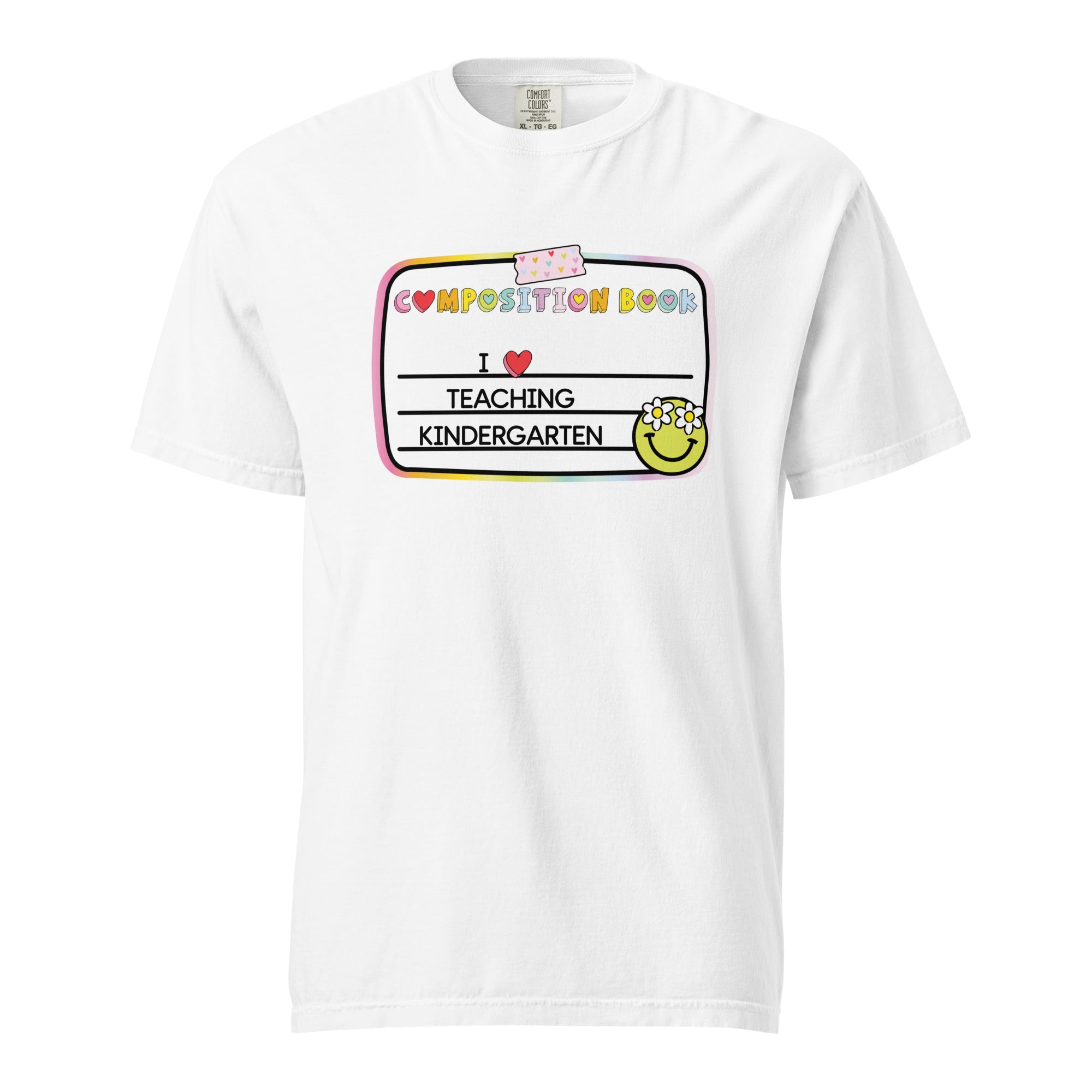 Start the school day with sunshine in this cheerful I ❤️ Teaching Kindergarten tee designed with a rainbow composition book vibe and flower-power smiley face. It’s the perfect teacher shirt for spreading love, kindness, and classroom confidence.