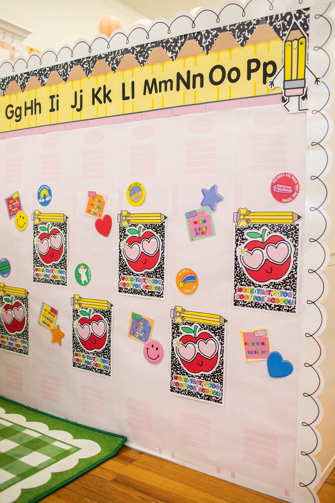 Meet Late for Class—a nostalgic nod to the high school hallway, reinvented in soft pink. This bulletin board paper mimics classic school lockers and is perfect for adding structure and whimsy to your classroom walls.
