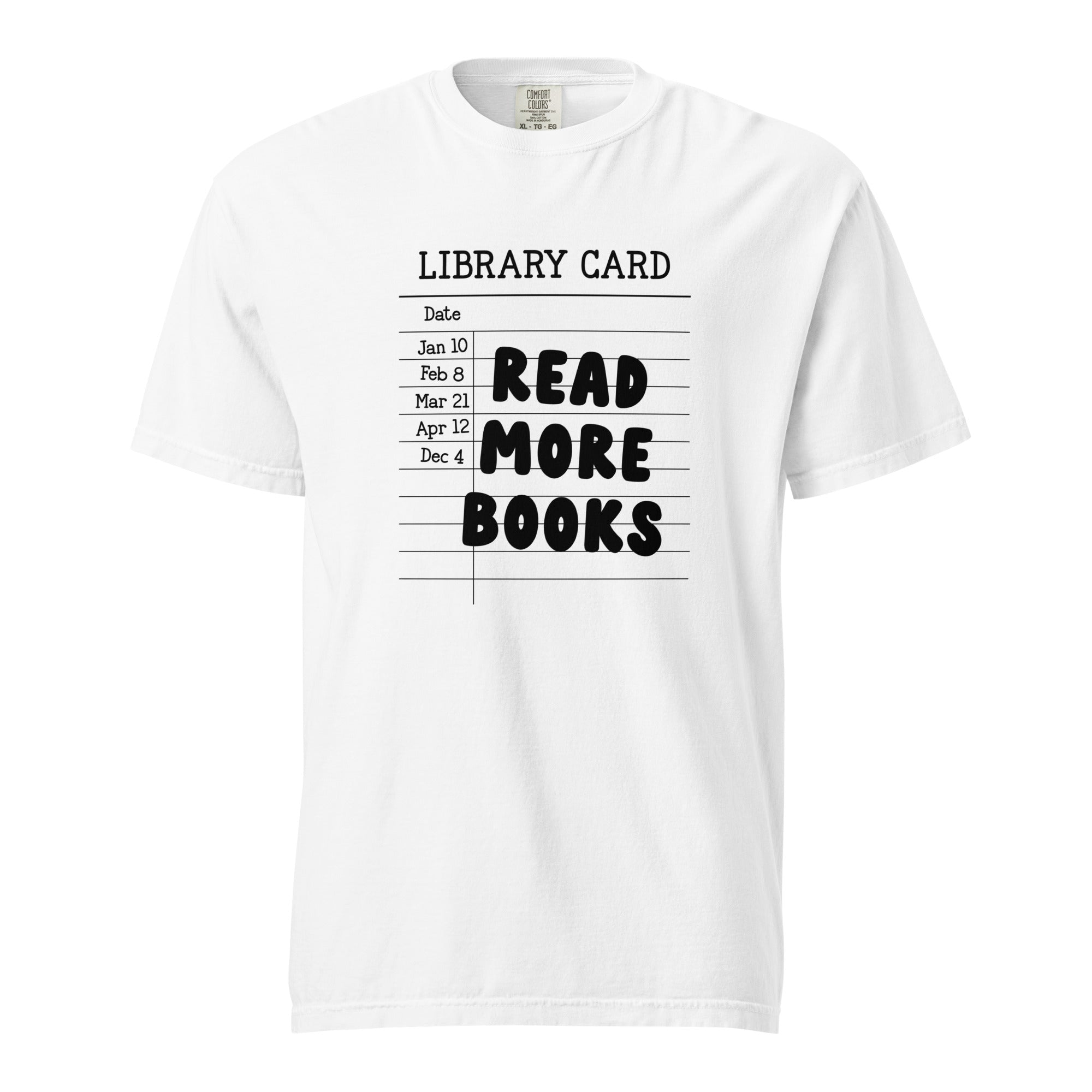 Modeled after an old-school library card, this cute t-shirt features a check-out list filled with dates and the best advice ever: Read More Books. It's a must-have for book lovers and anyone spreading the joy of reading.