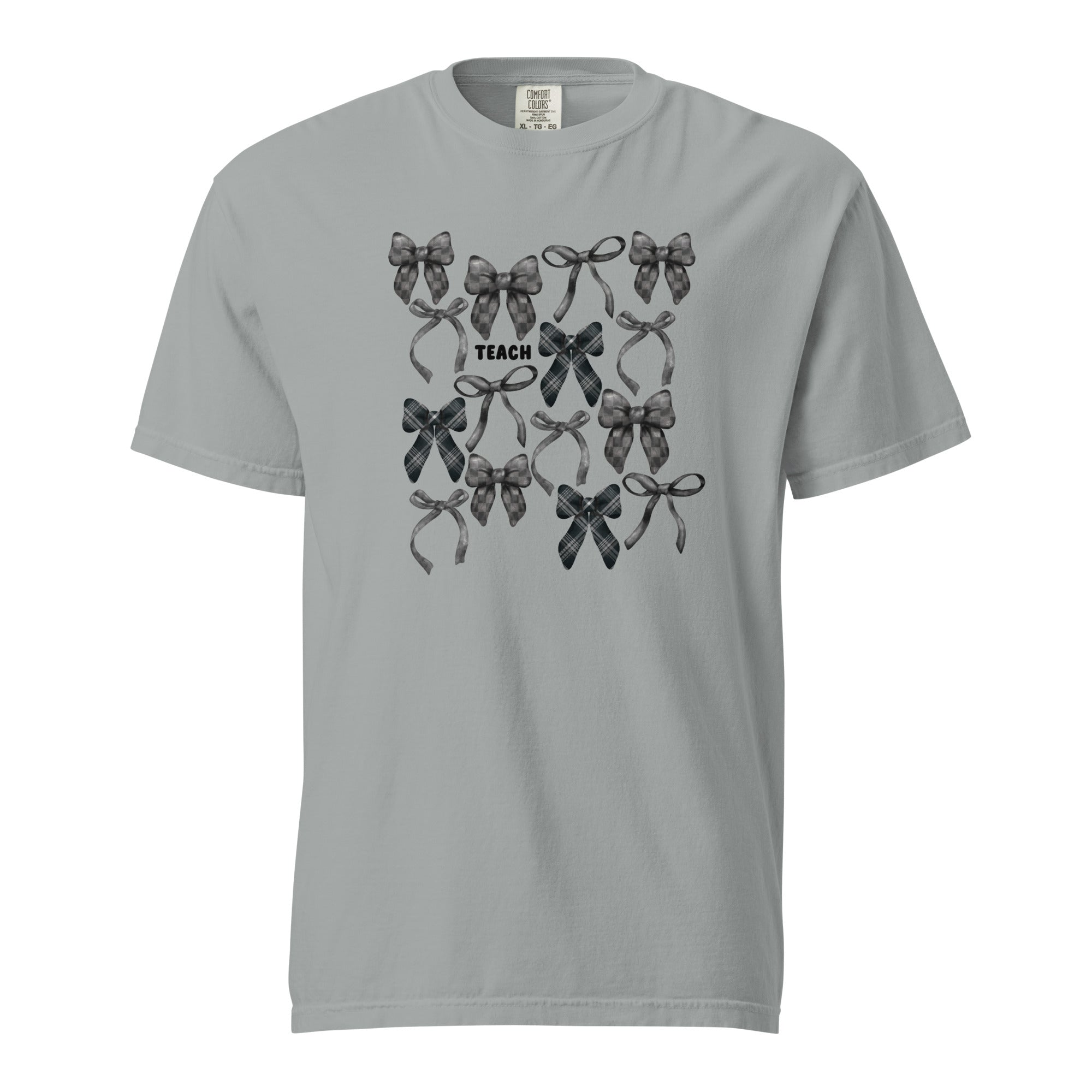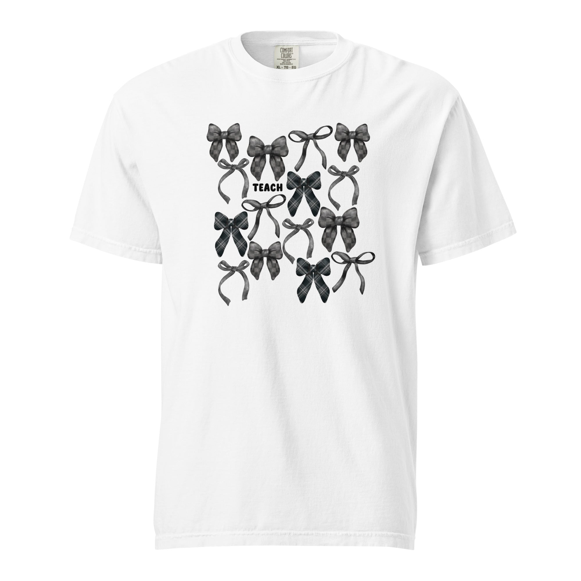 This tee is a celebration of all things bows—plaid, check, and ribbon—paired with a bold TEACH in the middle. It’s a dreamy neutral moment that goes with every classroom and every coffee run.